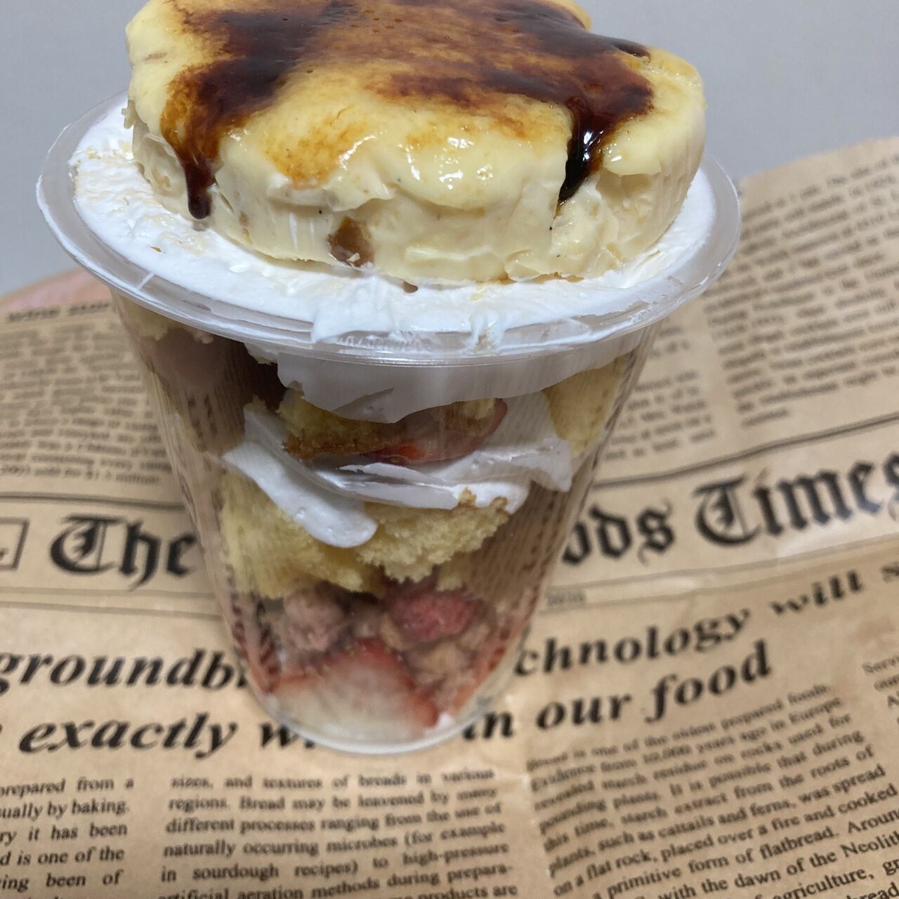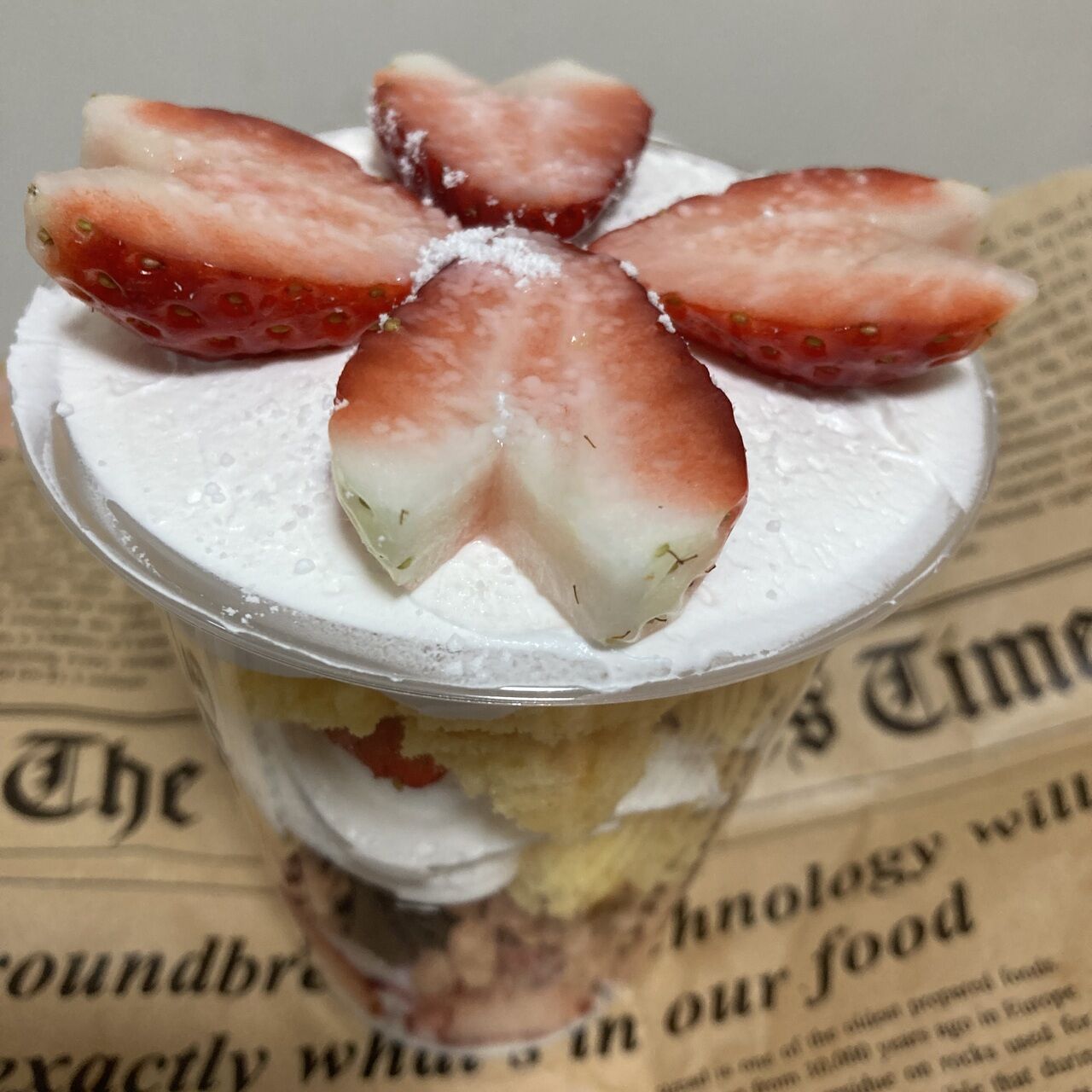 旬のいちごとスポンジ、ホイップクリーム、カスタードクリームを重ねてパフェにしました。