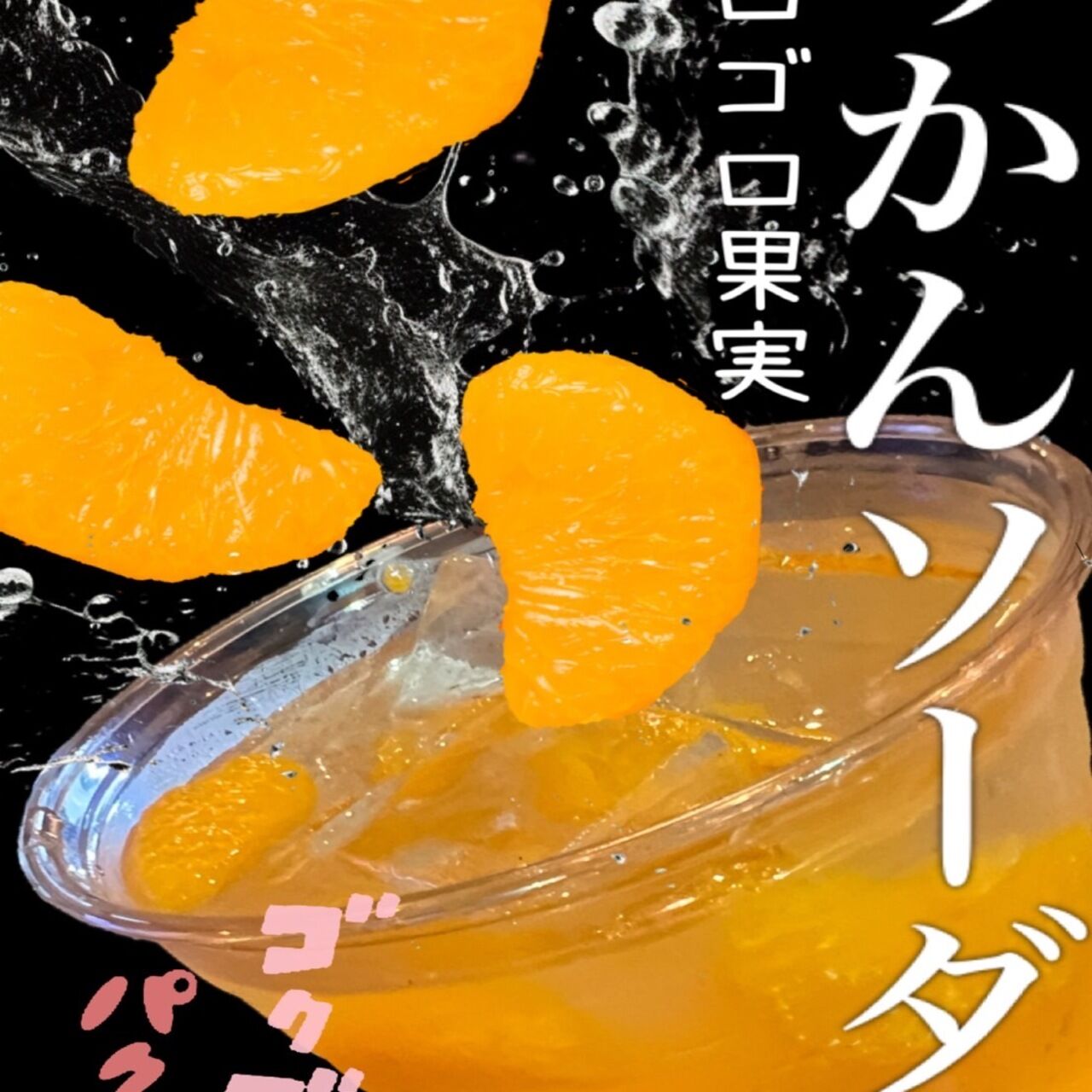 当店1番人気のドリンク。ゴロゴロみかんソーダ。ゴロゴロ果実でサッパリシュワっと!
