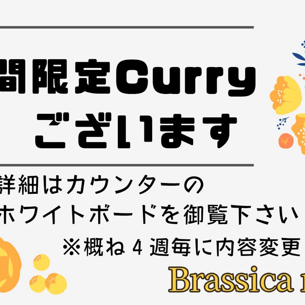 概ね4週毎に内容が変わる『期間限定Curry』詳細は店頭でご確認お願いします。パクチー少量無料、2種盛り可(例外あり)でお得です。