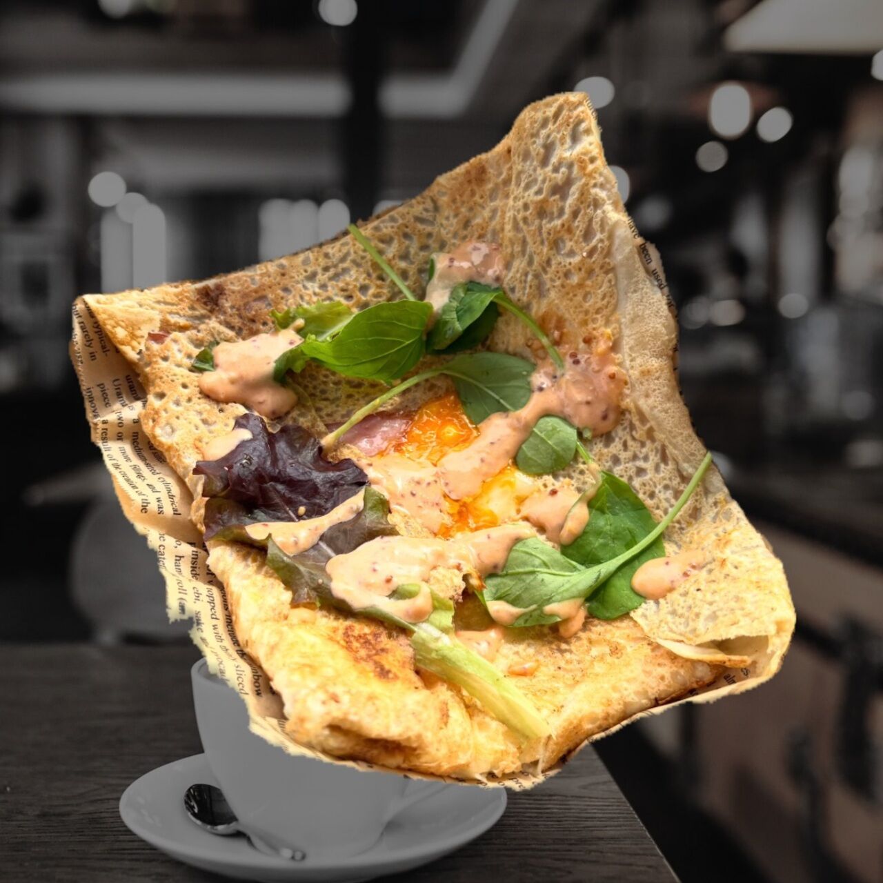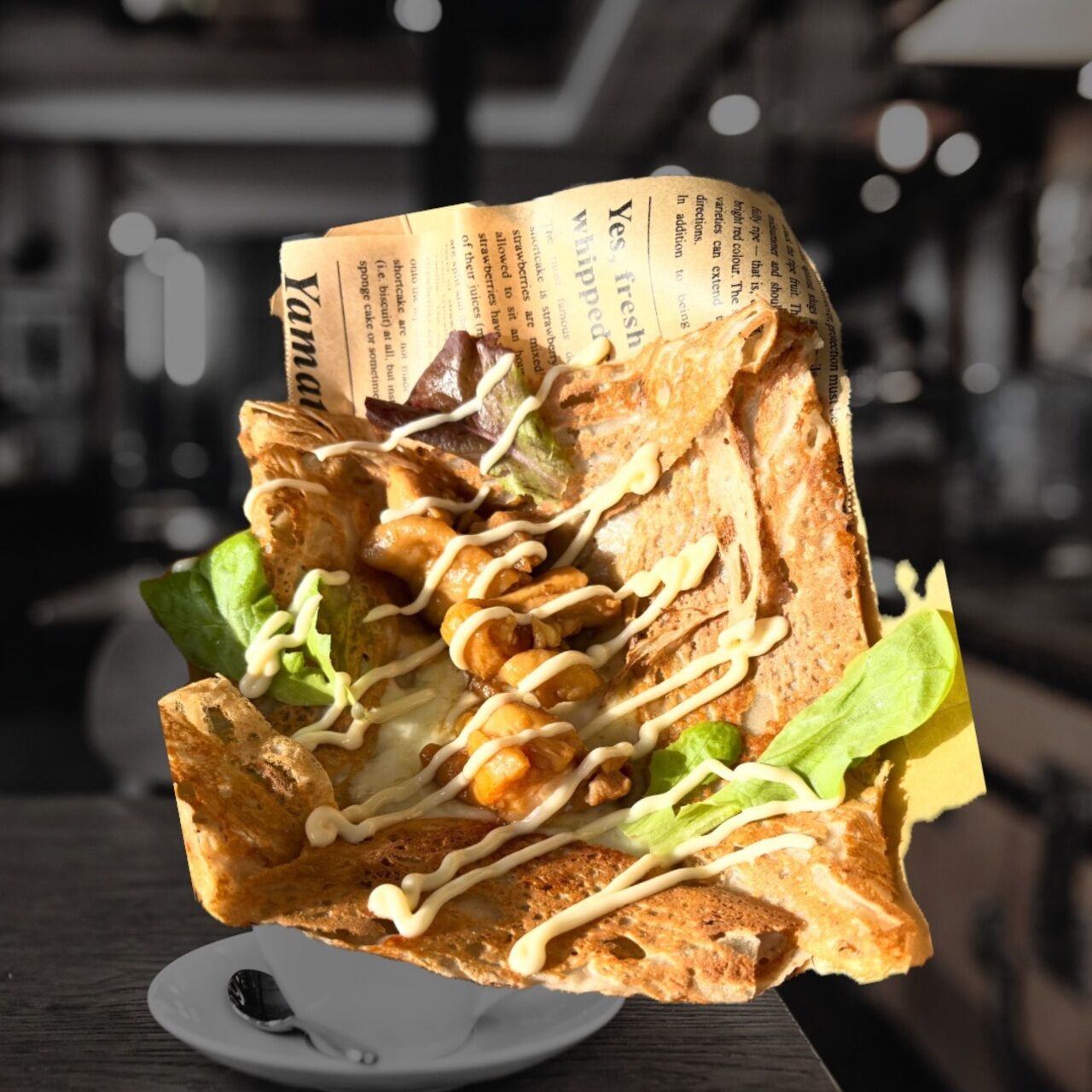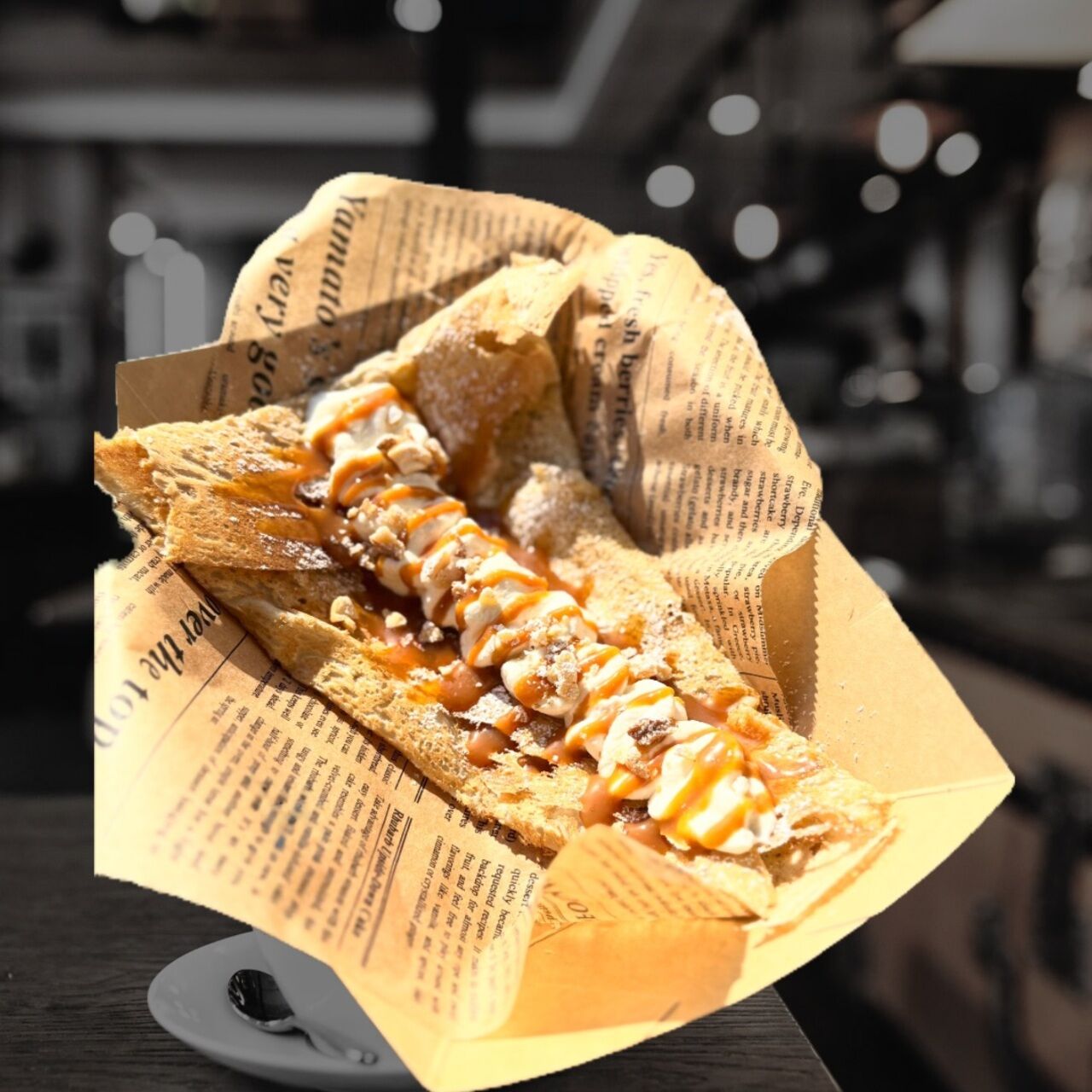自家製キャラメルソースと生クリームに塩ナッツを散りばめたガレット