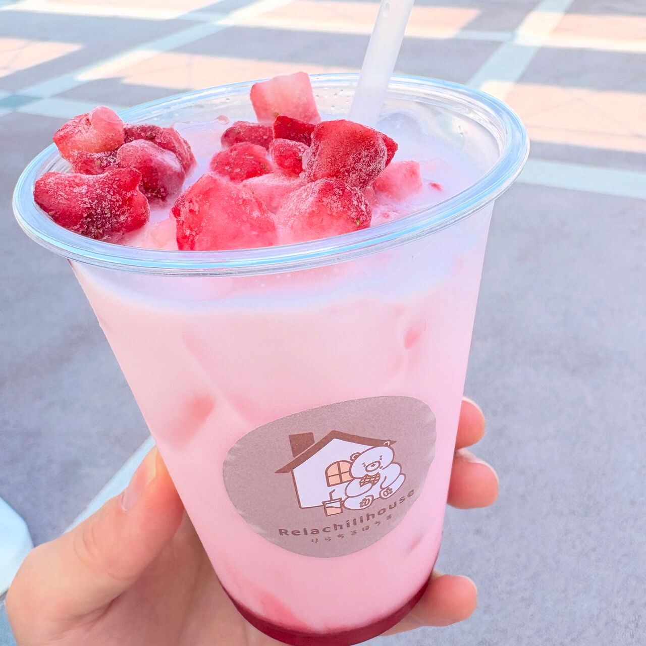 いちご果実とソースを入れた甘酸っぱくて美味しいレモネードです。炭酸割りもできます。