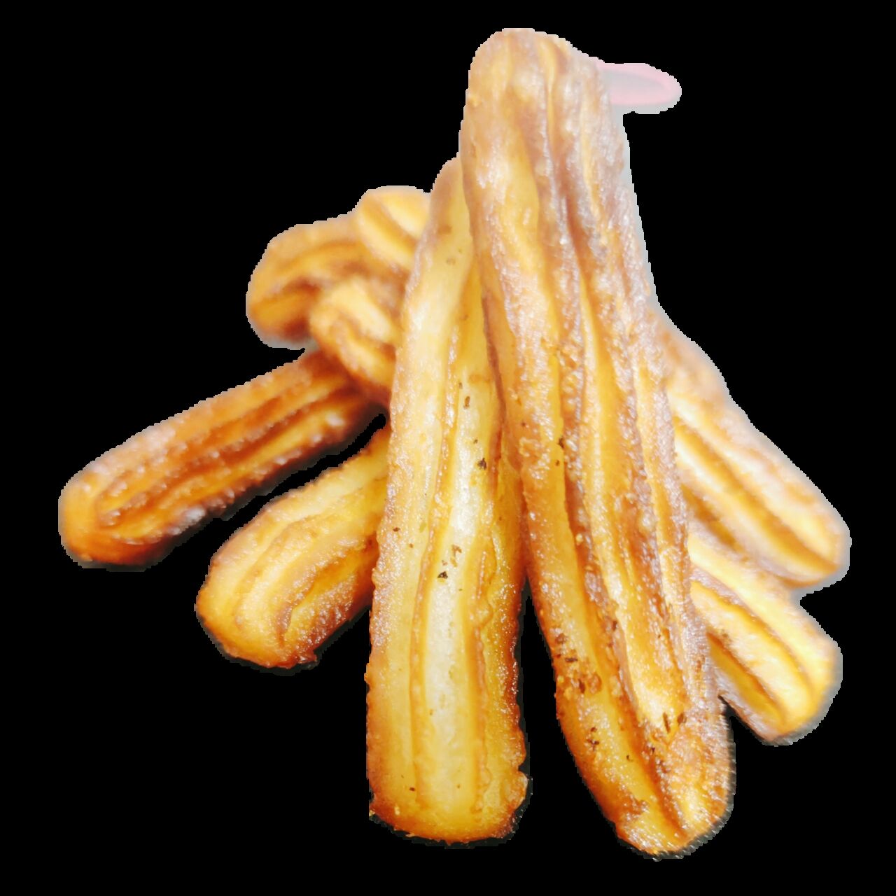 外はカリカリ、中はふわふわのチュロスです。短いチュロスのため、お子様でも食べやすい。トッピングでさまざまなフレーバーも楽しめます。