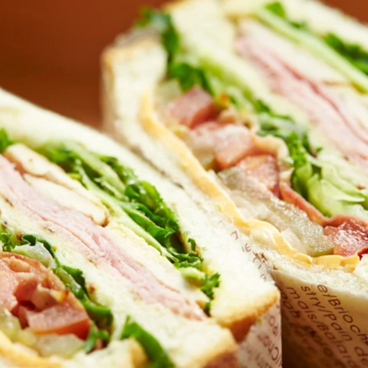 カリッとトーストに具材をサンド。たまごベーコン・チキン・バジルサラダ等数種類ご用意。