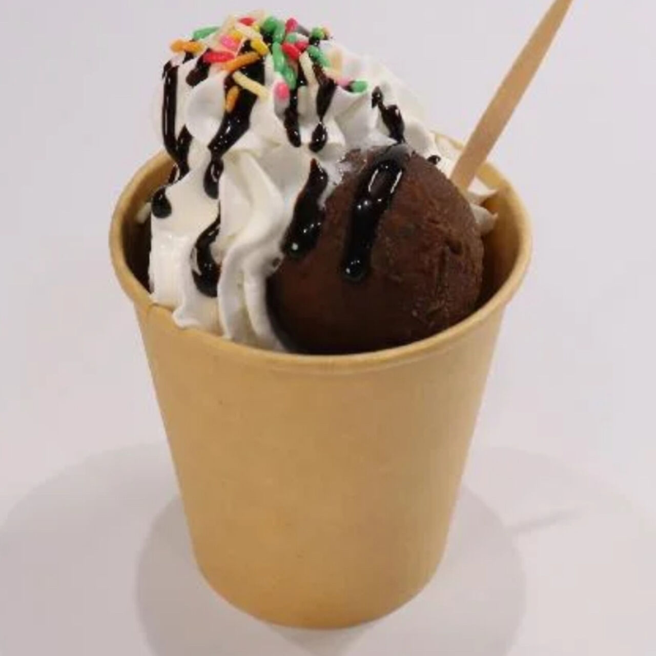 ふんわりしたチョコボールにとろーりチョコレートが入った温かいデザートです。