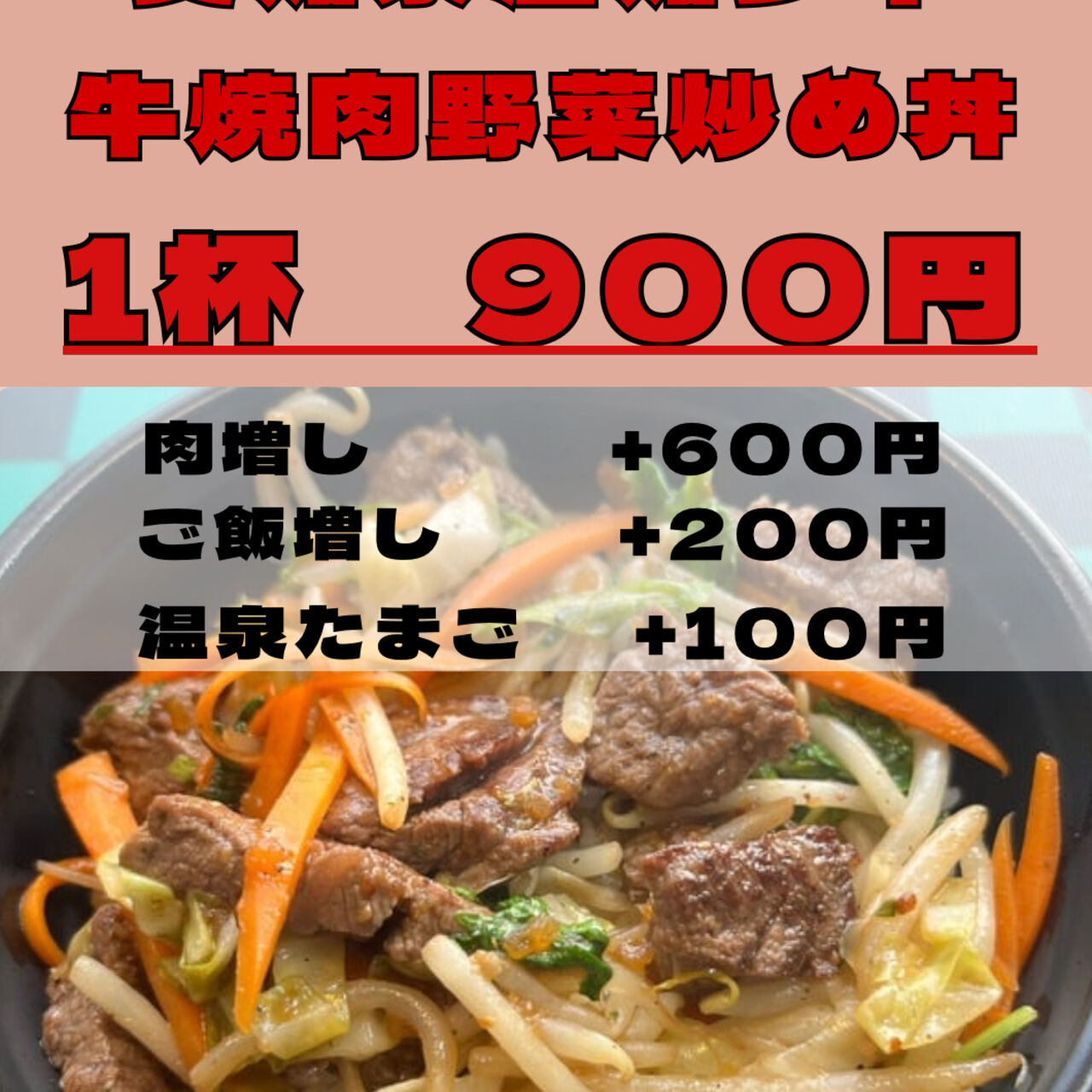 愛知県産知多牛焼肉とたっぷり野菜炒めのボリューム丼。平日ランチ限定