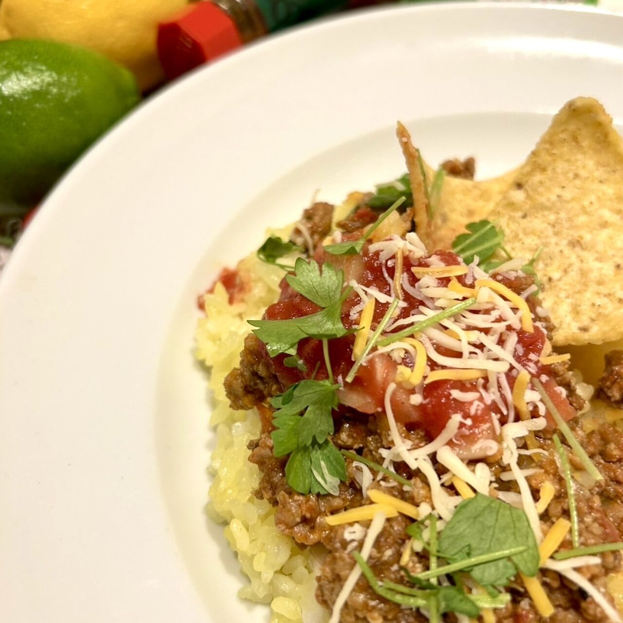 ミートと野菜がたっぷり入ったタコス屋さん自慢のタコライス🥗食べ応え抜群‼️
