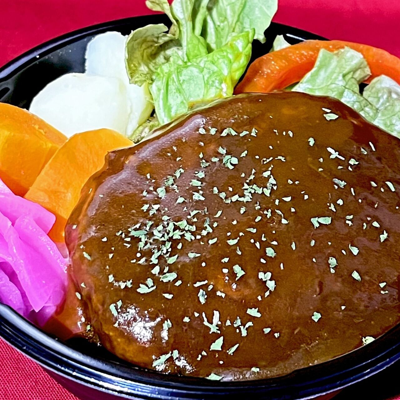 牛肉100%の贅沢なハンバーグです。 濃厚なデミソースでじっくりコトコト。 遠方からでも足を運んで頂ける自慢のハンバーグです。