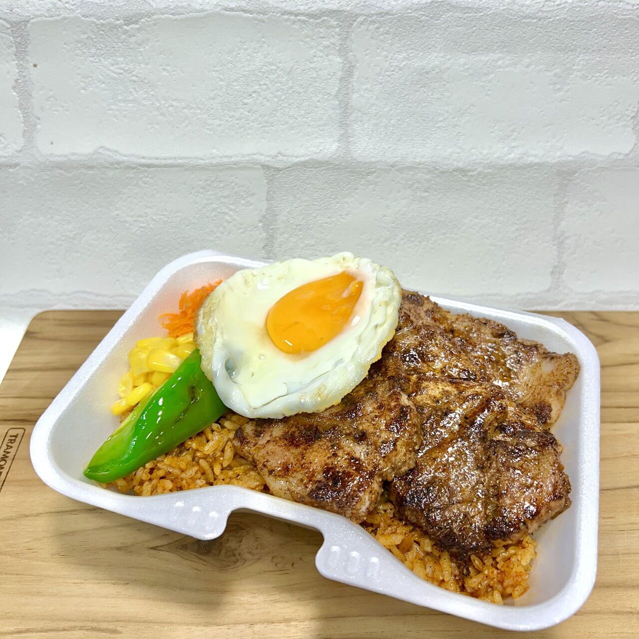 カリブ海周辺でよく使用される"オールスパイス"を使ったグリルポークをジャンバラヤにトッピング。バジルやセイジの香り。