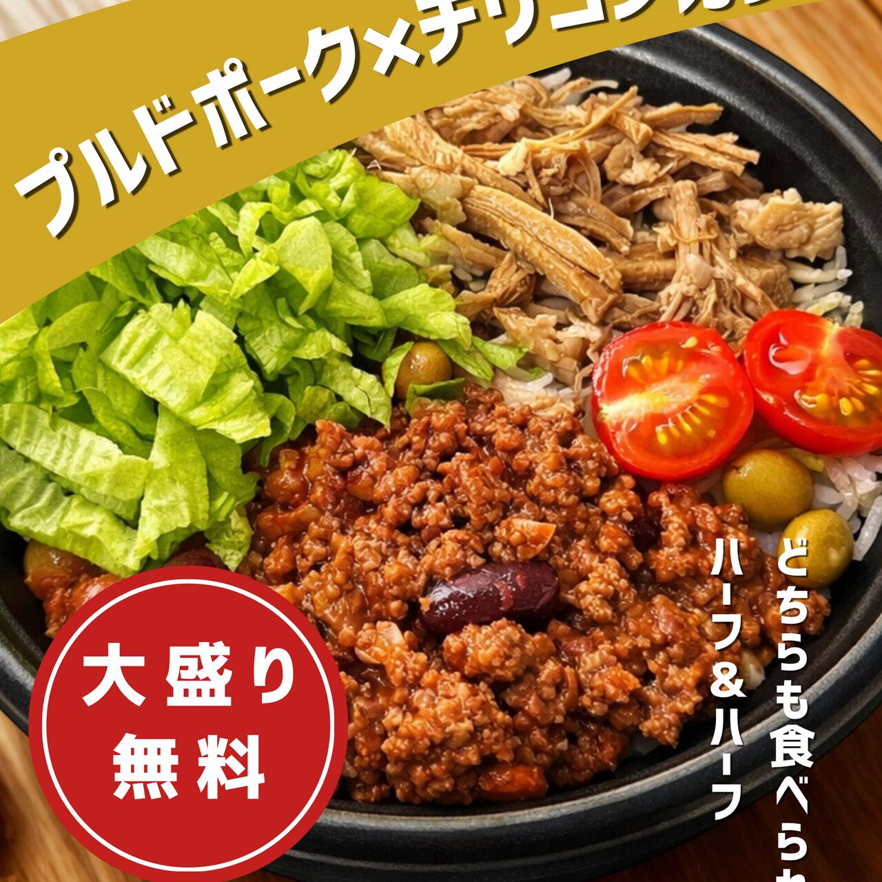 どちらも食べたい!!人気のプルドポークとチリコンカンのハーフ&ハーフ!欲張りbowlです!