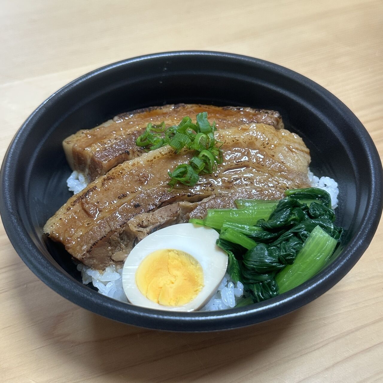 数量限定!ほろほろの豚の角煮をご飯にのせました。ご飯大盛り+100円。
