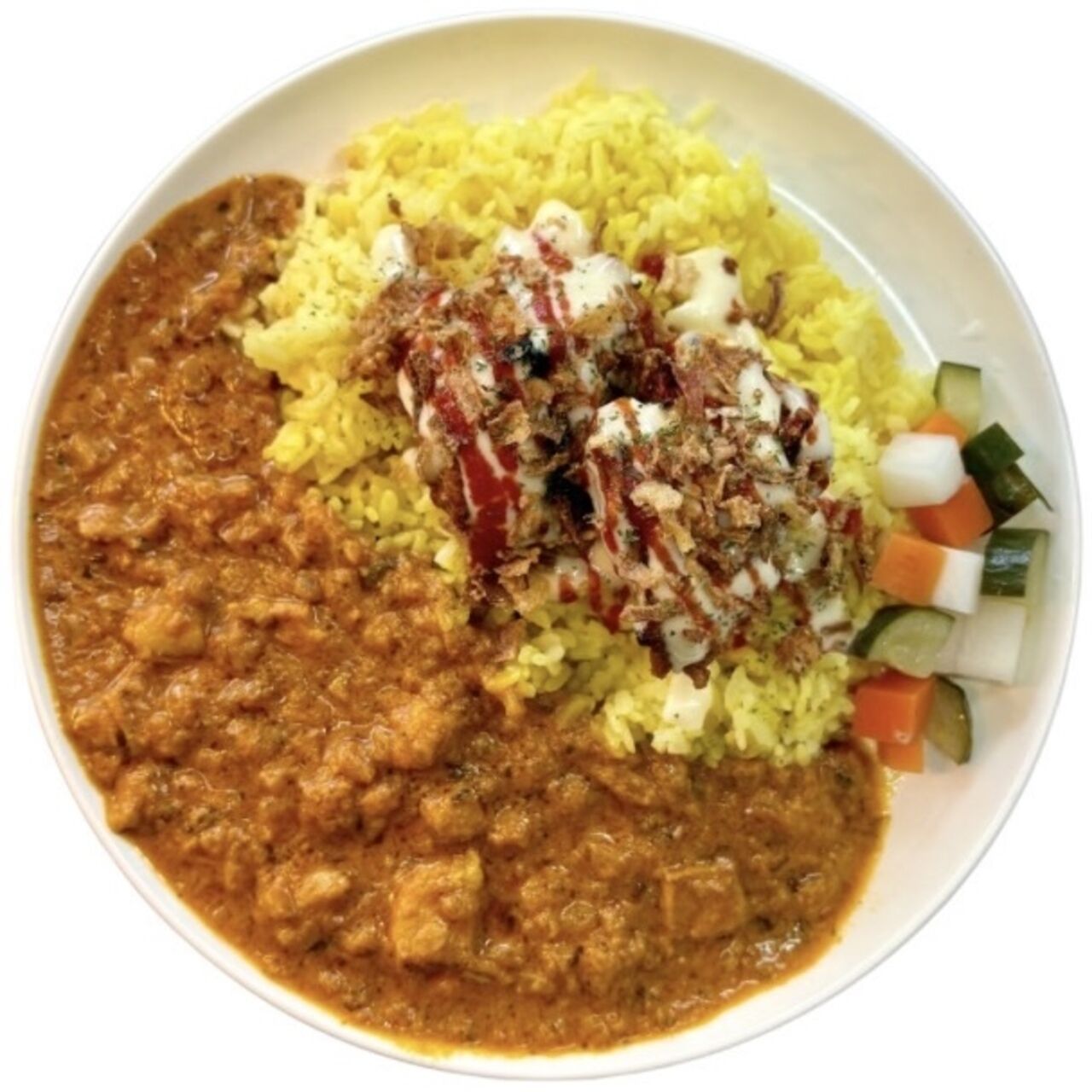 鶏の旨みをじっくり引き出した濃厚チキンカレー。バターとスパイスの香りが溶け合い、とろけるようなコクと深みを感じるリッチな味わいに仕上げました。
