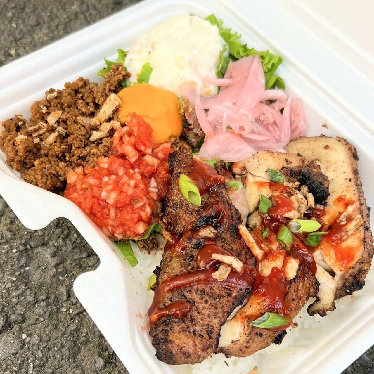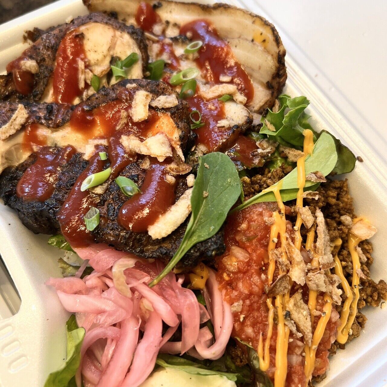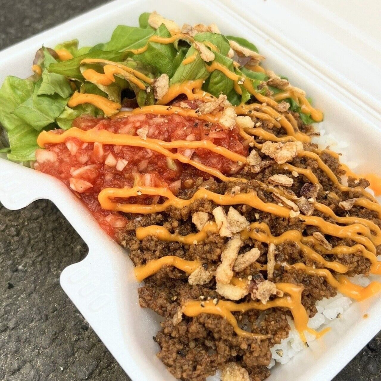 自家製のタコミートとサルサを使用したタコライスにルッコラをトッピング!
