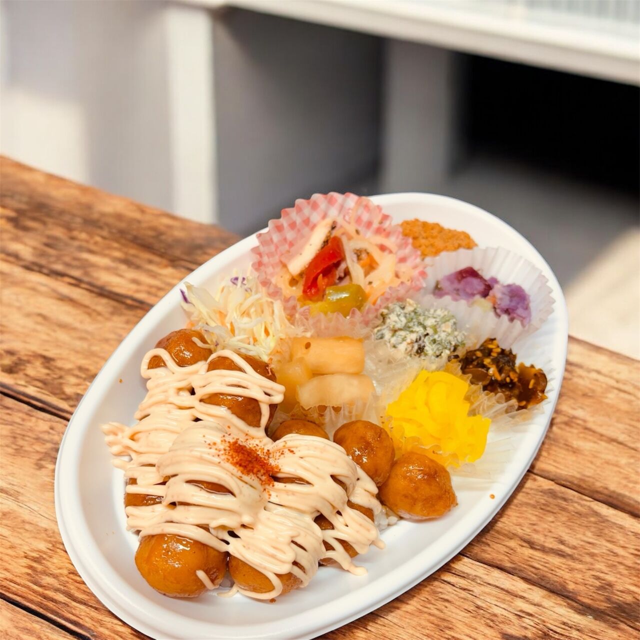 白米or発芽酵素玄米から選べる!オリジナルソースと博多めんたいマヨのコラボ!日替わりおかず付き