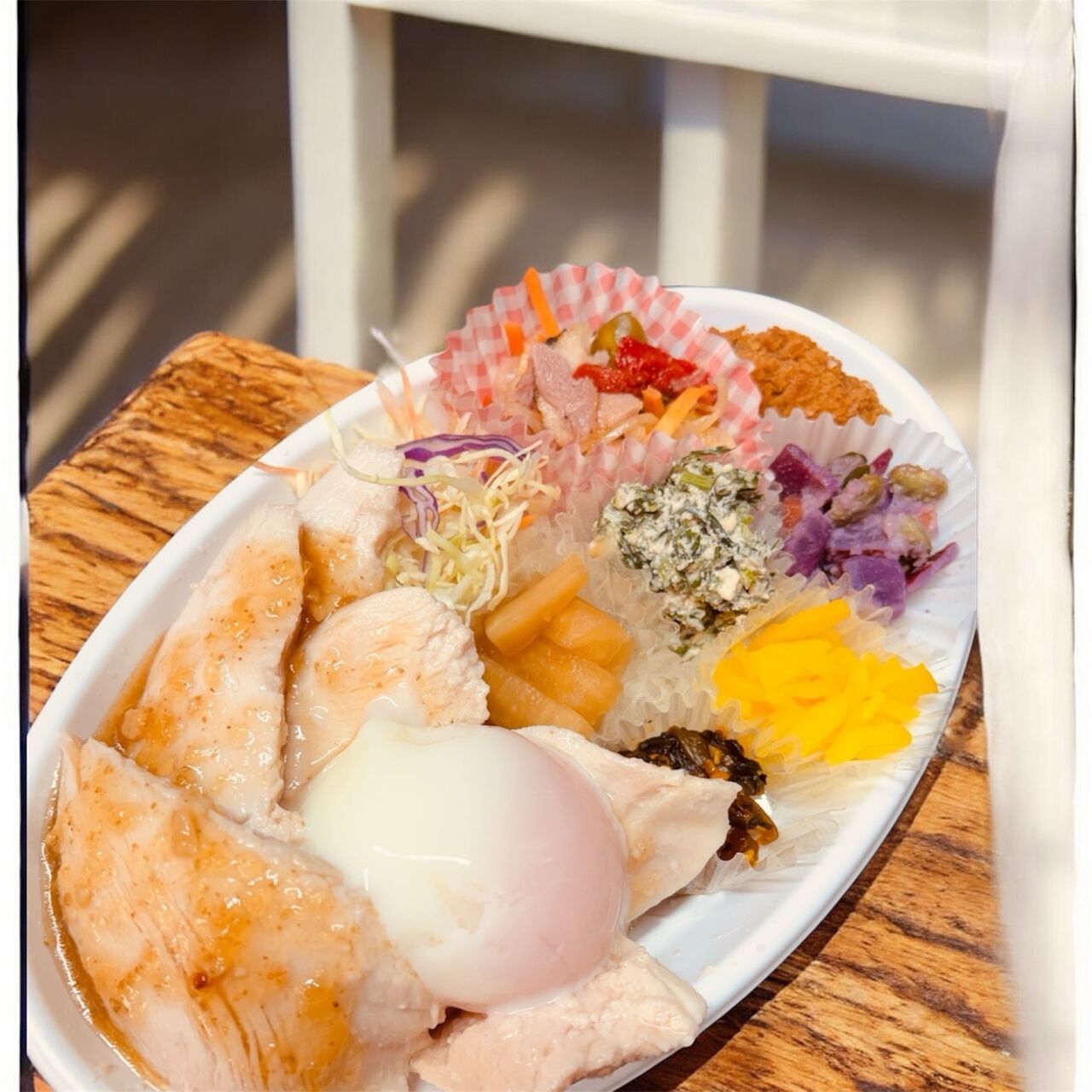 白米or発芽酵素玄米から選べる!酵素チキンにとろとろ温玉のトッピング!日替わりおかず付き