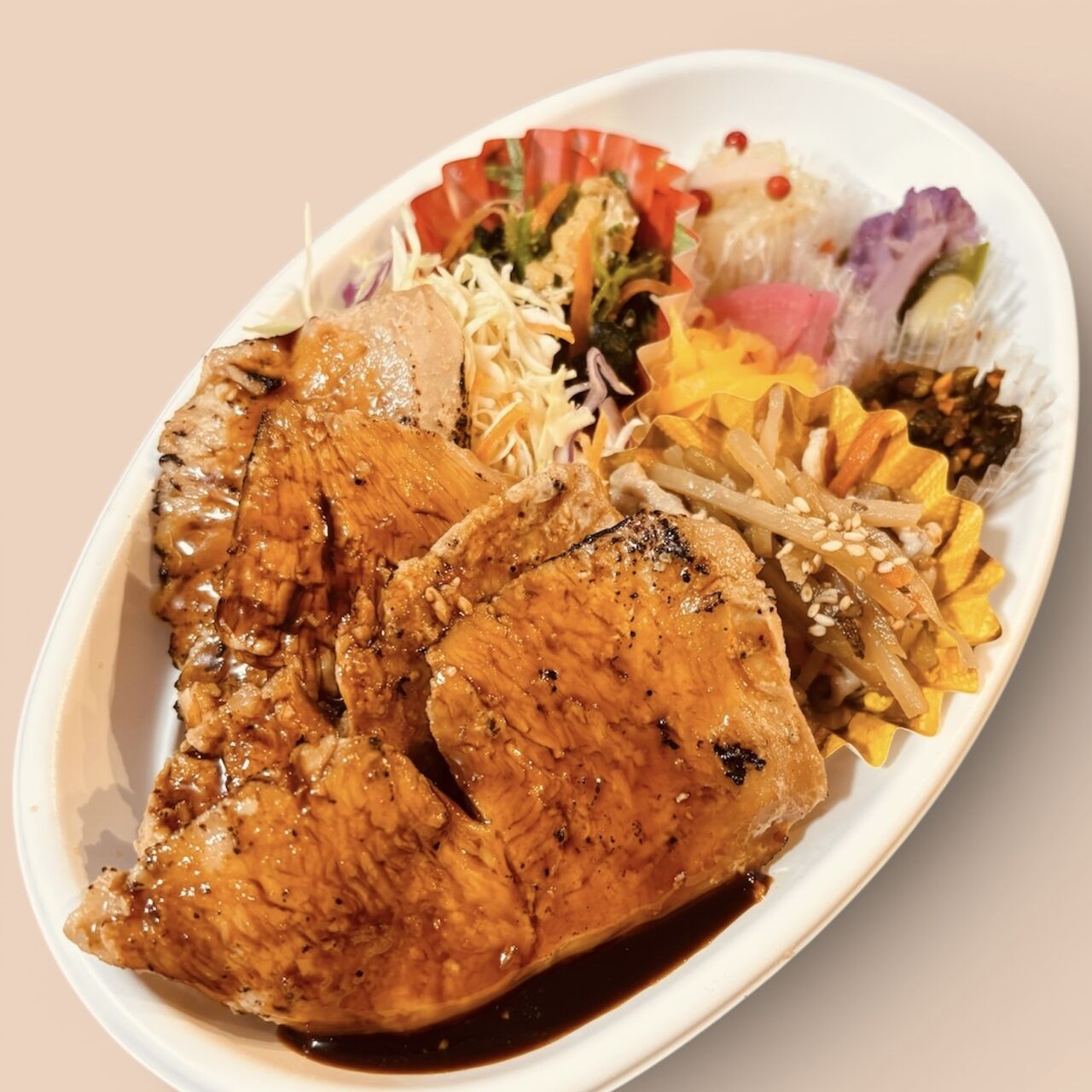 甘辛たれの鶏重弁当に、日替わりおかずが付いたお得な出来立てお弁当!売り切れごめんの商品です