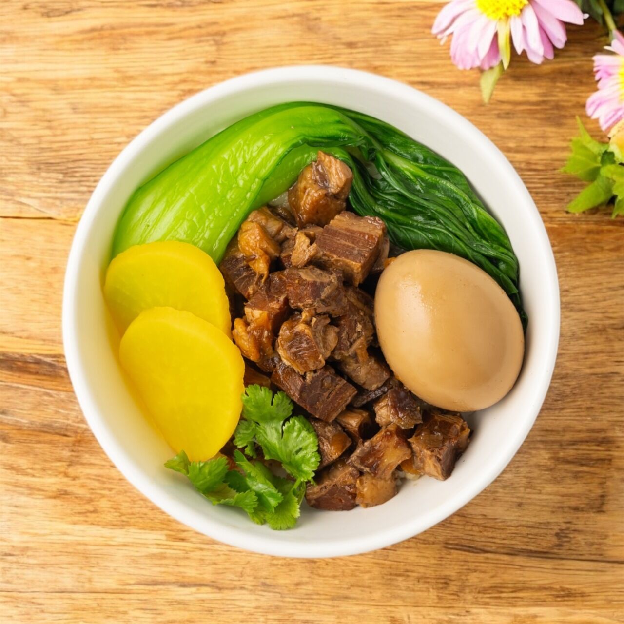 9種類のスパイスで煮込んだ本格派ルーロー飯に大きな豚バラ角煮が乗ってボリューム満点のご馳走丼です。