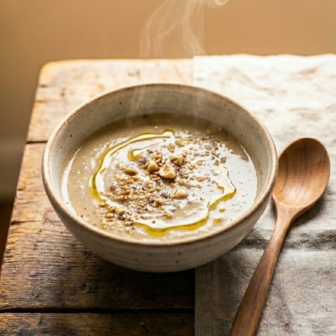 サバの旨みに驚くポタージュ 。アクセントに中東のミックススパイス 「デュカ」をかけています。