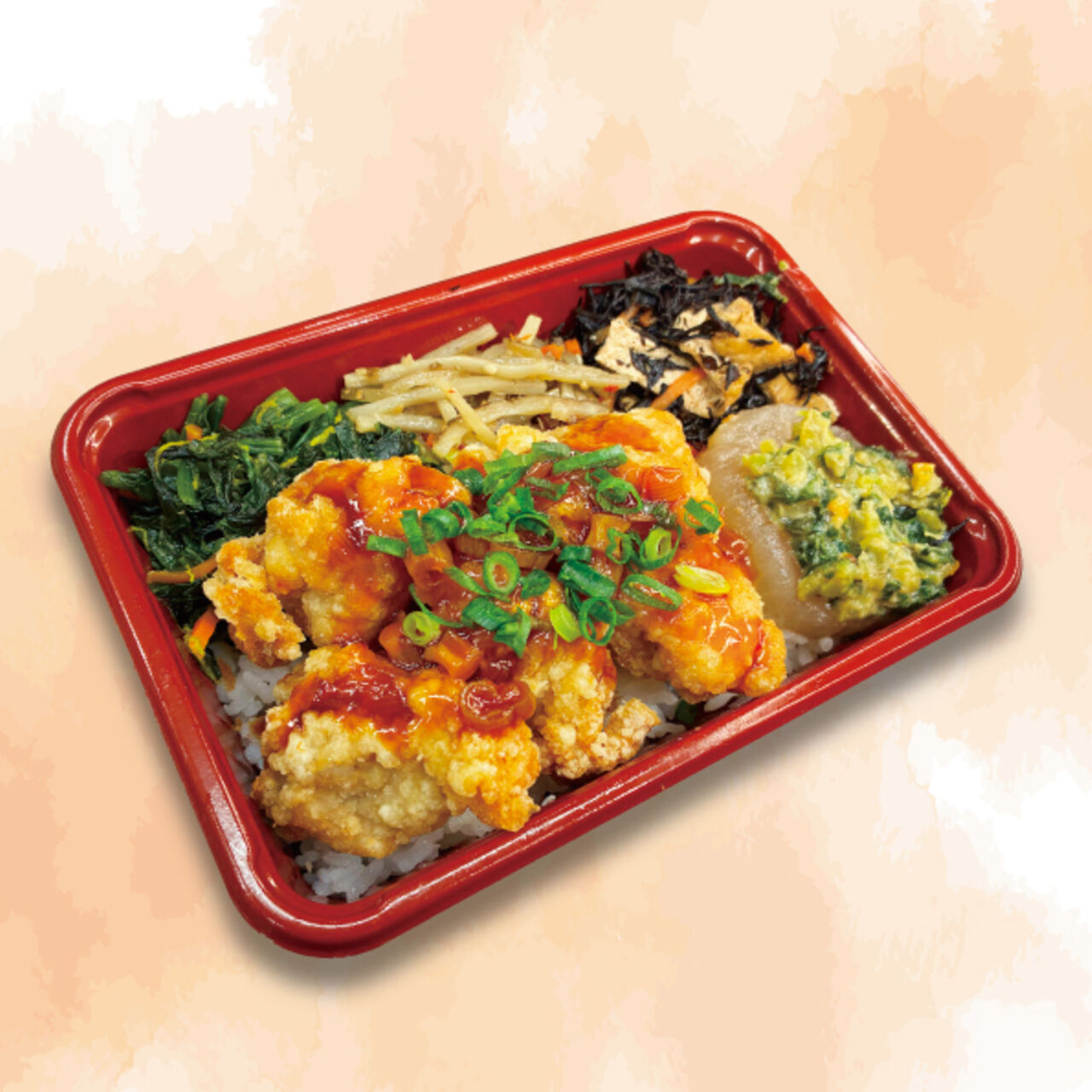 揚げたてサクサクの唐揚げに自家製油淋鶏ソースをたっぷりかけました。程よい辛さとコクのある旨みで、思わずご飯がすすむこと間違いなしです。やみつきの味わいをぜひ。