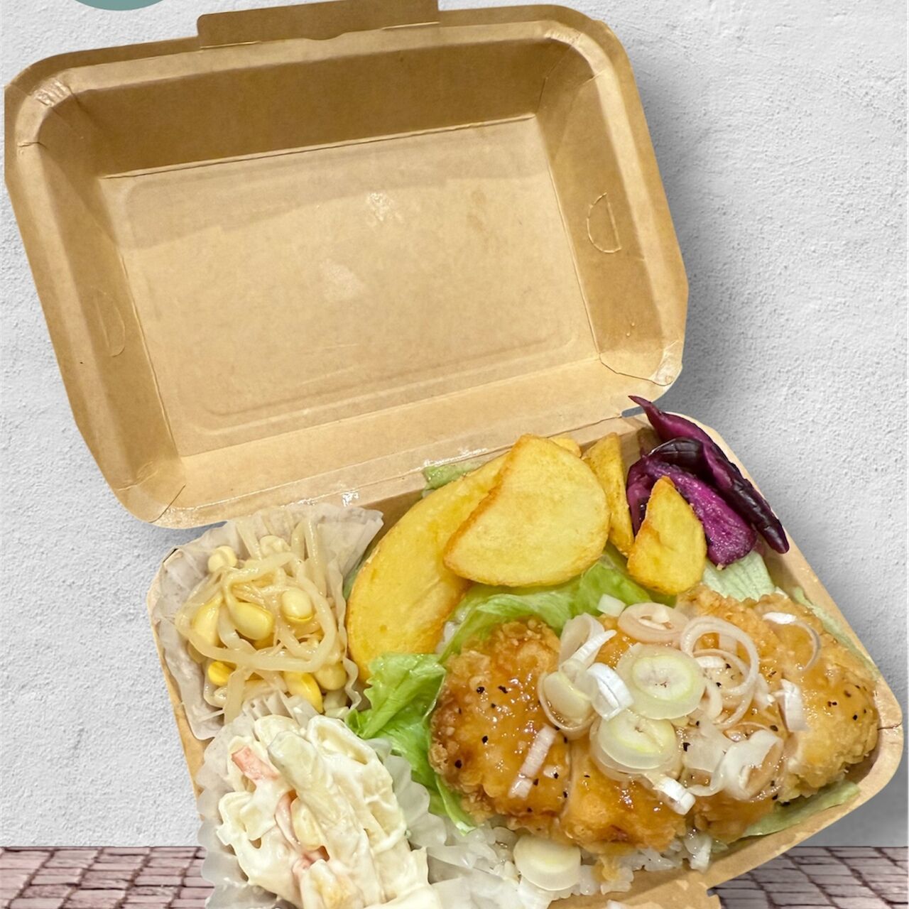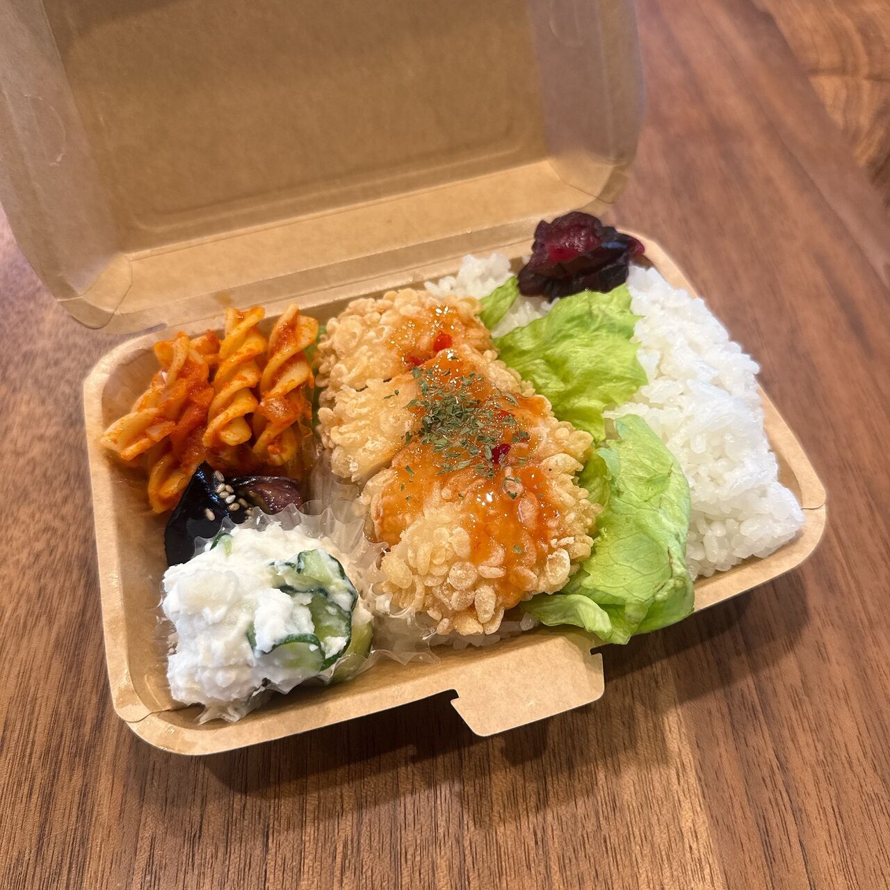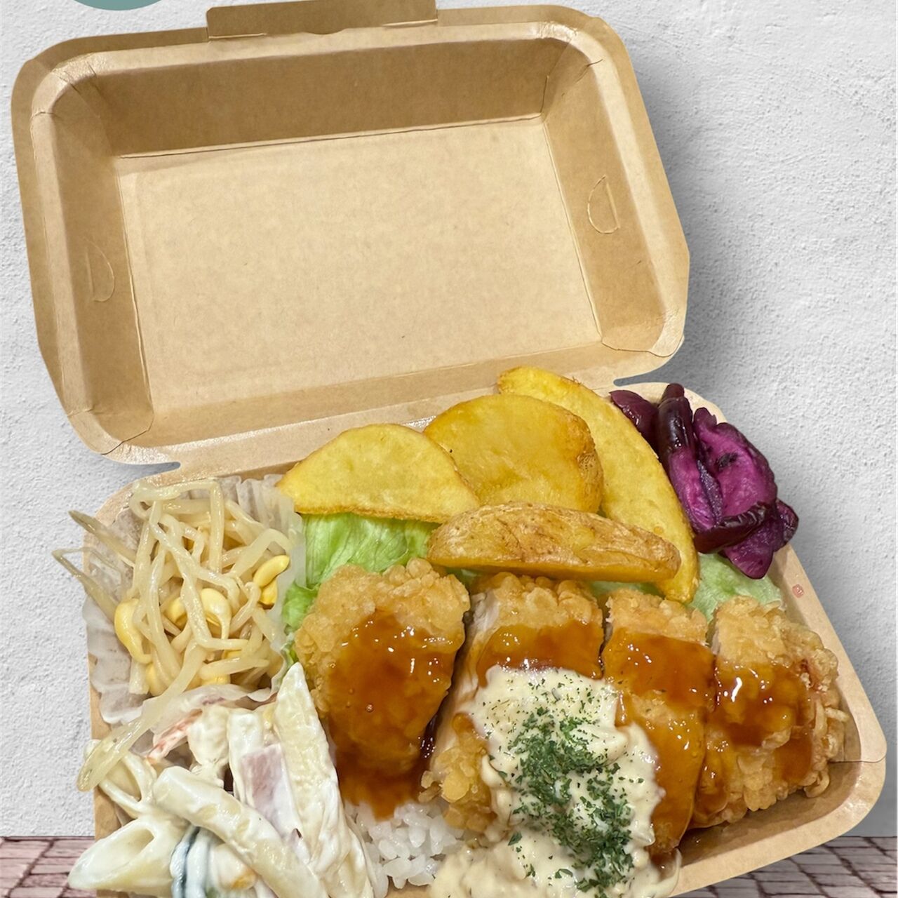 天だまチキンに南蛮ダレとタルタルソースを添えて。副菜は日替わりになります。