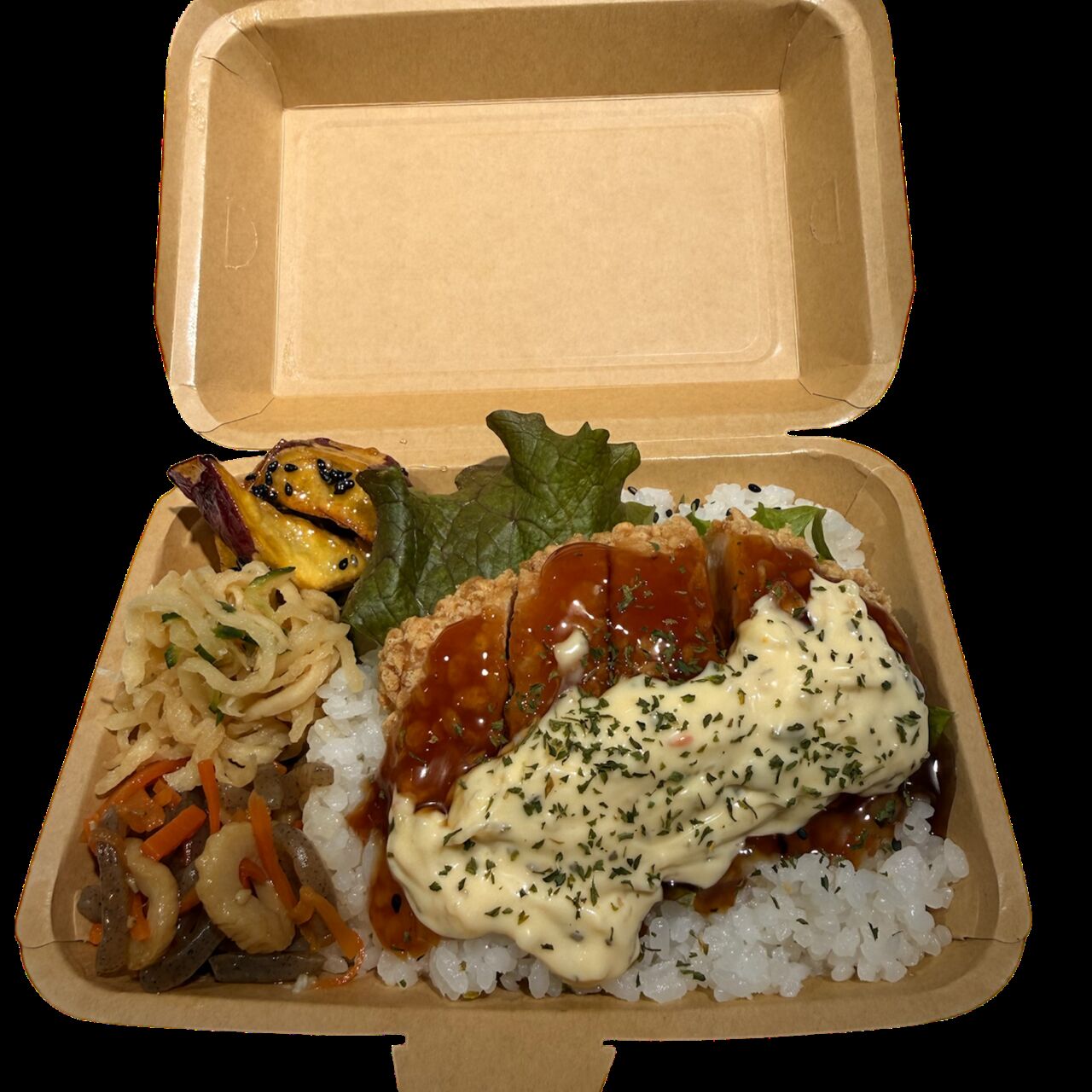 天だまチキンに南蛮ダレとタルタルソースを添えて。副菜は日替わりになります。