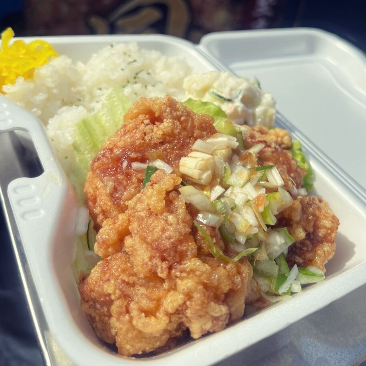 鳳自家製下味が染み込んだ唐揚げ!副菜は日によって変わります。(3個〜4個入り)