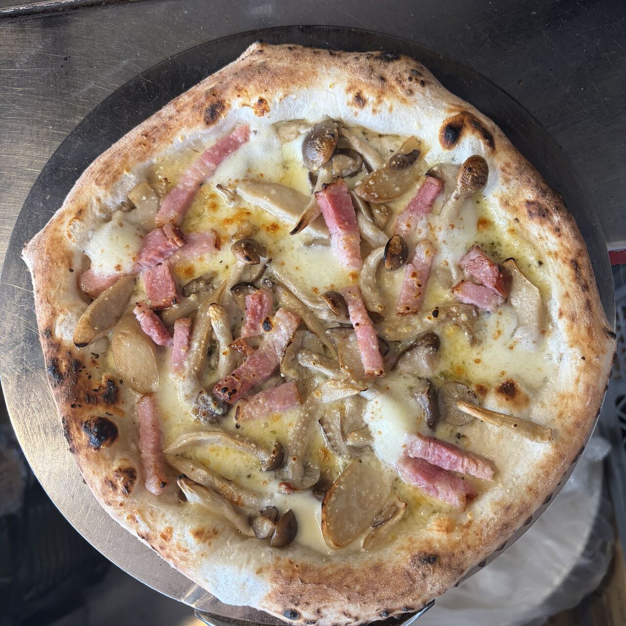 キノコの旨みがたまらないPIZZA(オレガノ・キノコマリネ・ベーコン・シュレッドチーズ・モッツァレラ)