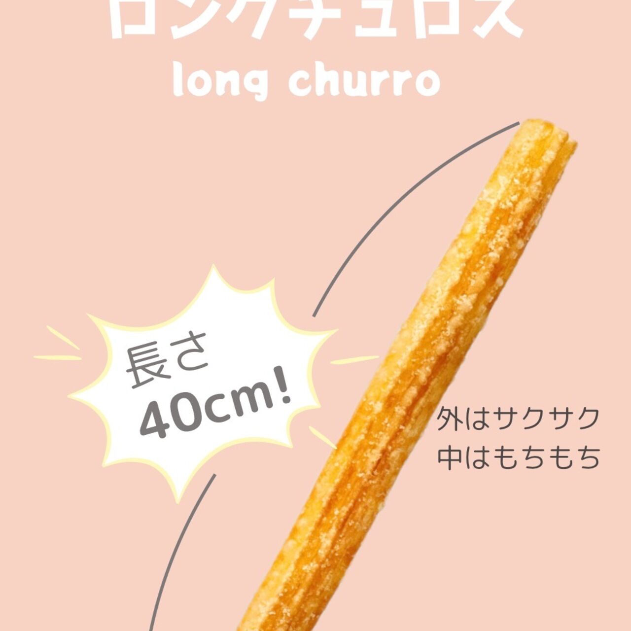 長さ40センチのロングチュロス!お子様から大人の方まで大人気です!