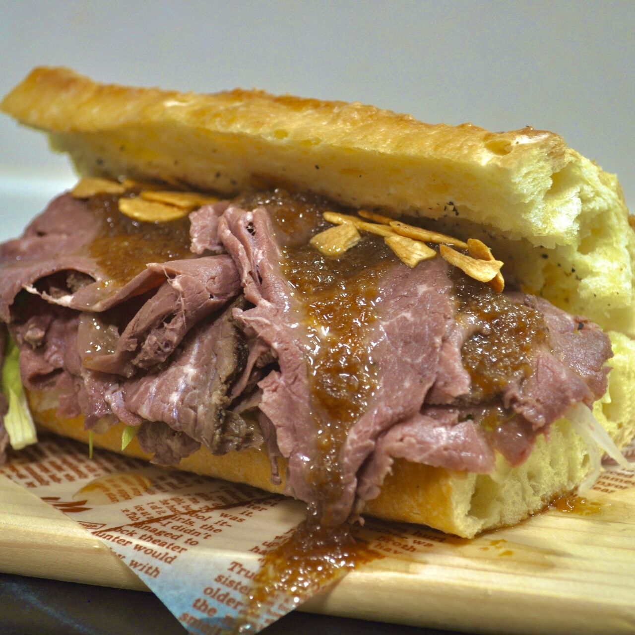 低音でじっくり調理した自家製ローストビーフをたっぷり使用したサンド。