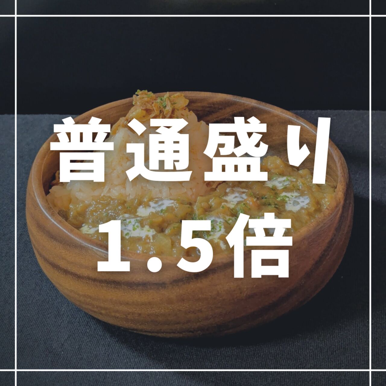 普通盛りの1.5倍量。野菜と果物の甘み×しっかりボリュームの大盛り甘口キーマカレー。