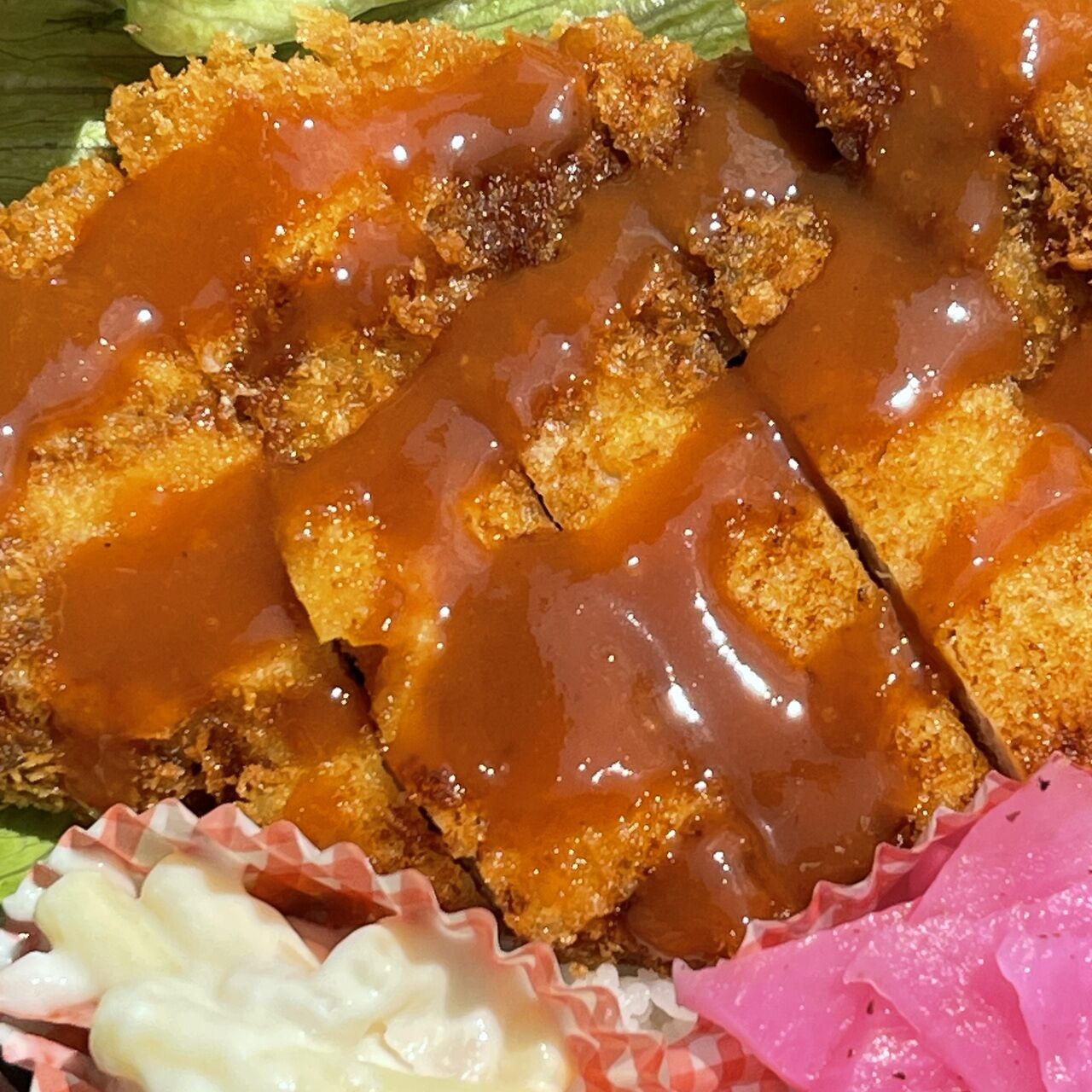 国産ブタを使い、サクサクジューシーやらかく仕上げました。