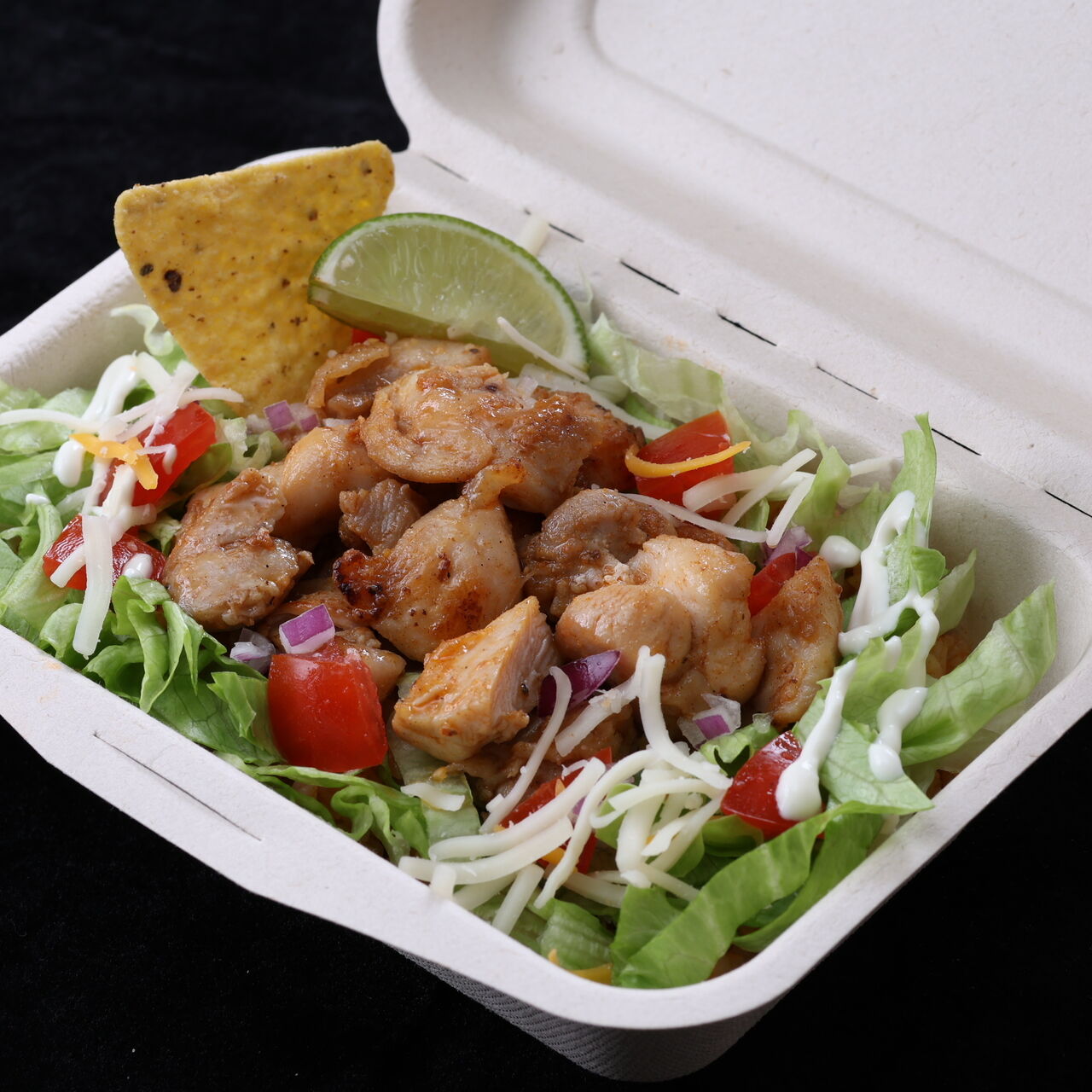スモーキーで旨み豊かなやわらかチキンとメキシカンライスに、彩り野菜と生ライムを添えた爽やかなタコライス。