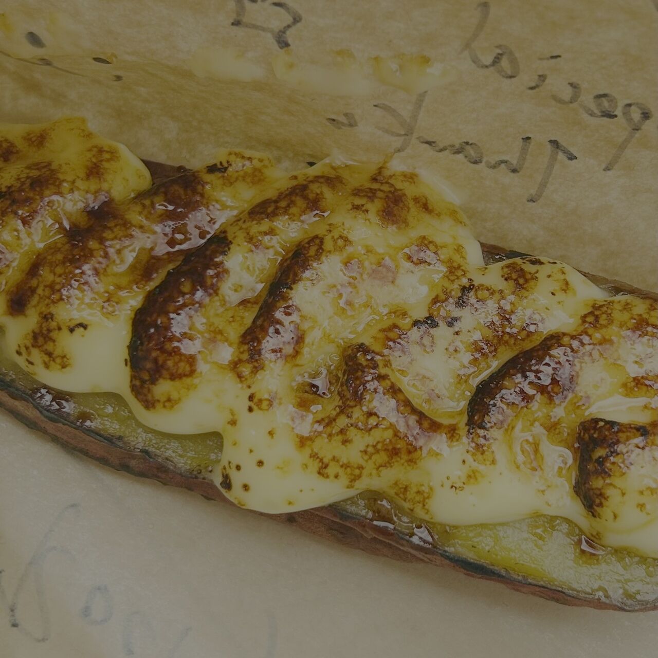 焼き芋の上にカスタードをたっぷりのせキャラメリーゼされた絶品ブリュレ