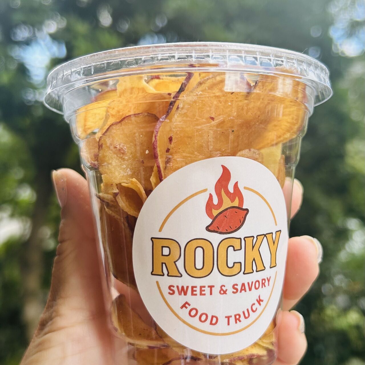 さつまいもの種類【紅はるか】を使ったチップスが新登場!宗像大社の大島で採れたパワー溢れた塩を使っています。