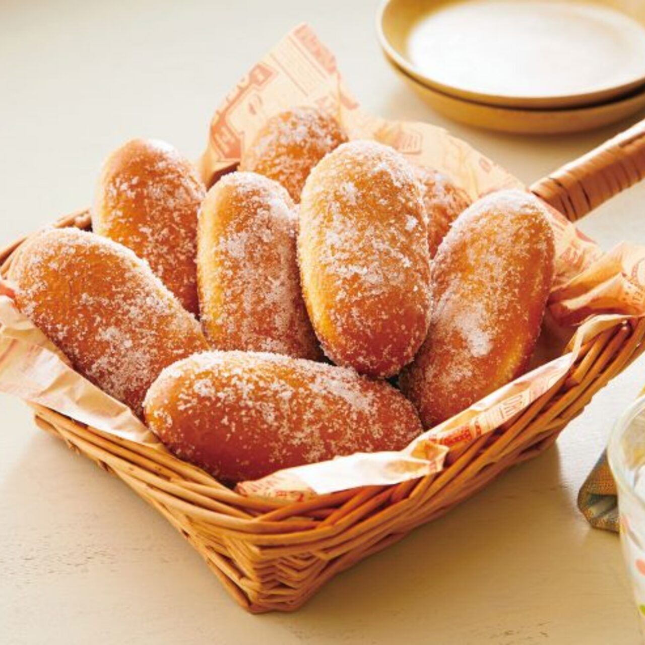 ミニフランスパンを揚げパンにしました!きな粉・シナモンシュガー・ココア・抹茶・ミルクティーの5つの味が日替わりで楽しめます。食後のおやつに、食べ歩きに最適♪