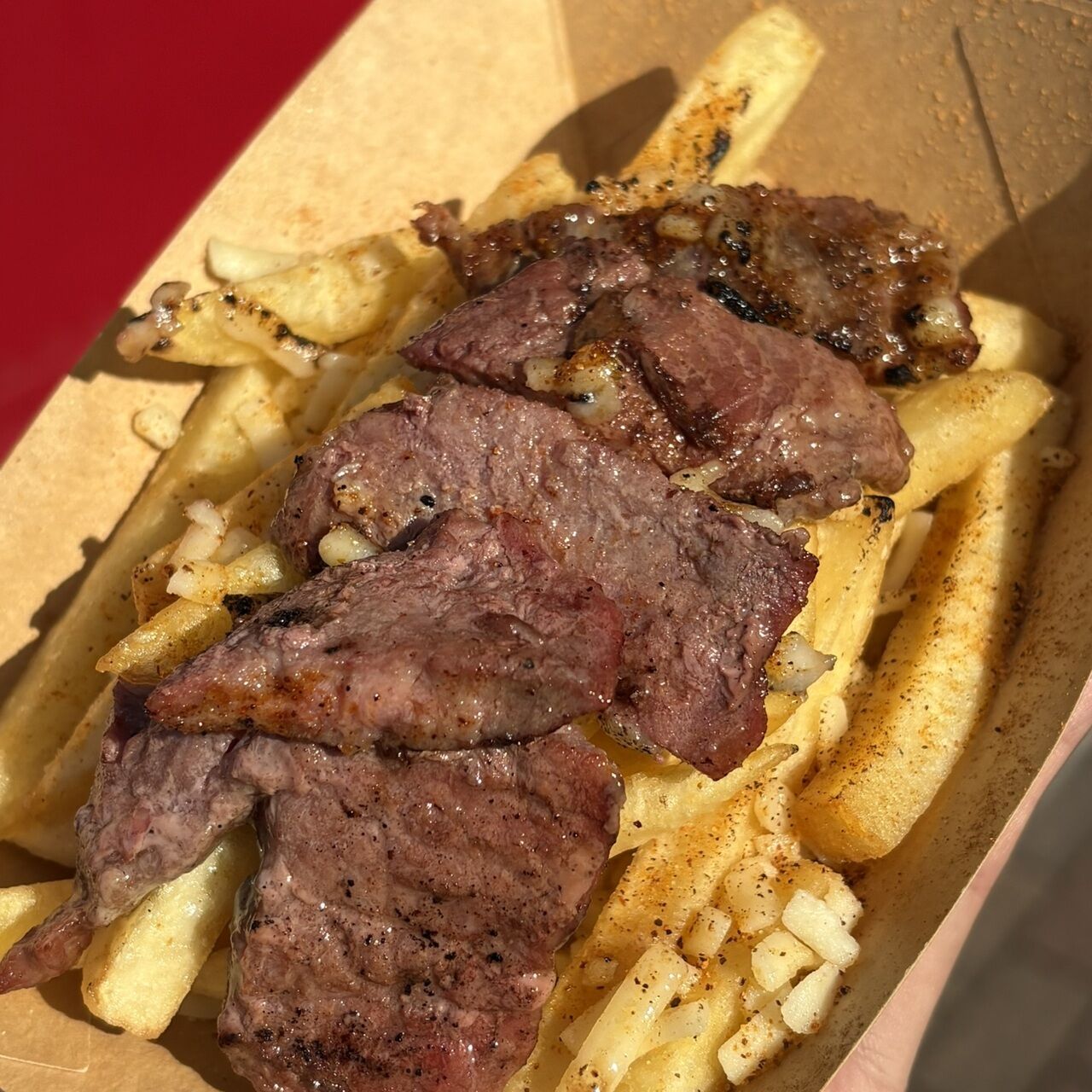 フライドポテトの上にステーキとチーズをふんだんに載せた悪魔的ジャンクフード!