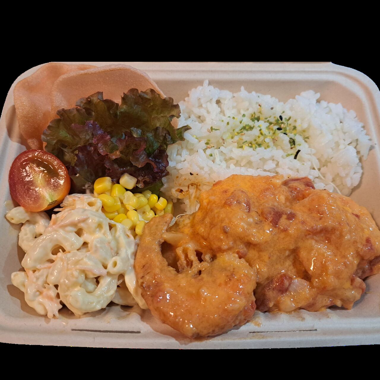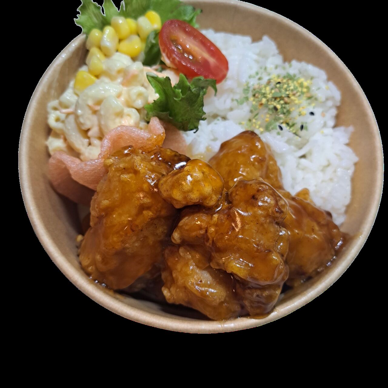 オレンジを使用したソースに衣が絡み、甘じょっぱい癖になる一品。お好みでレッドペッパーをかければ、ぴりっと刺激ある味に!