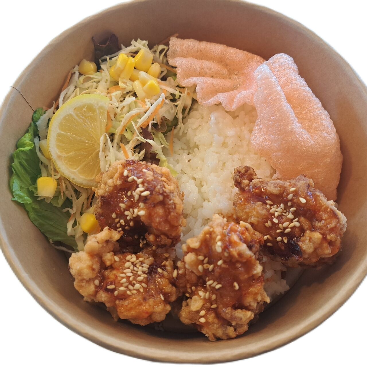 もち粉であげるハワイの唐揚げ。甘めの味付け、レモン風味でさっぱりと食べられます。その場で揚げてるので熱々ジューシー!