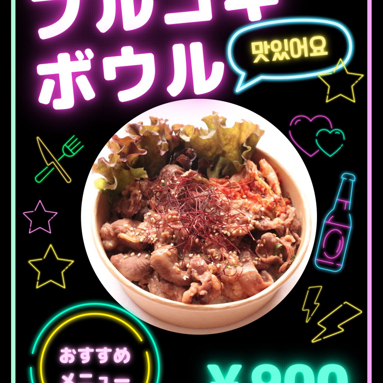 韓国料理定番の甘辛プルコギ肉をご飯に乗せたプルコギボウルです。