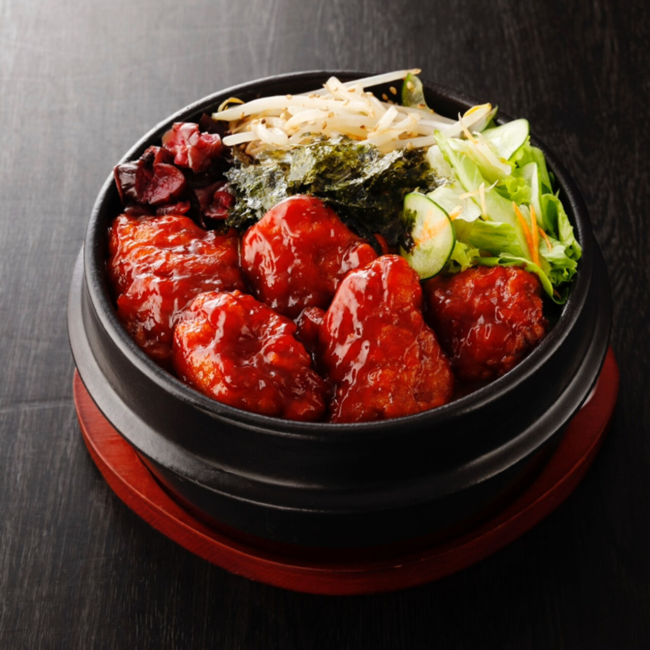 ヤンニョムチキン丼ハニーマスタードチキンの欲張り丼