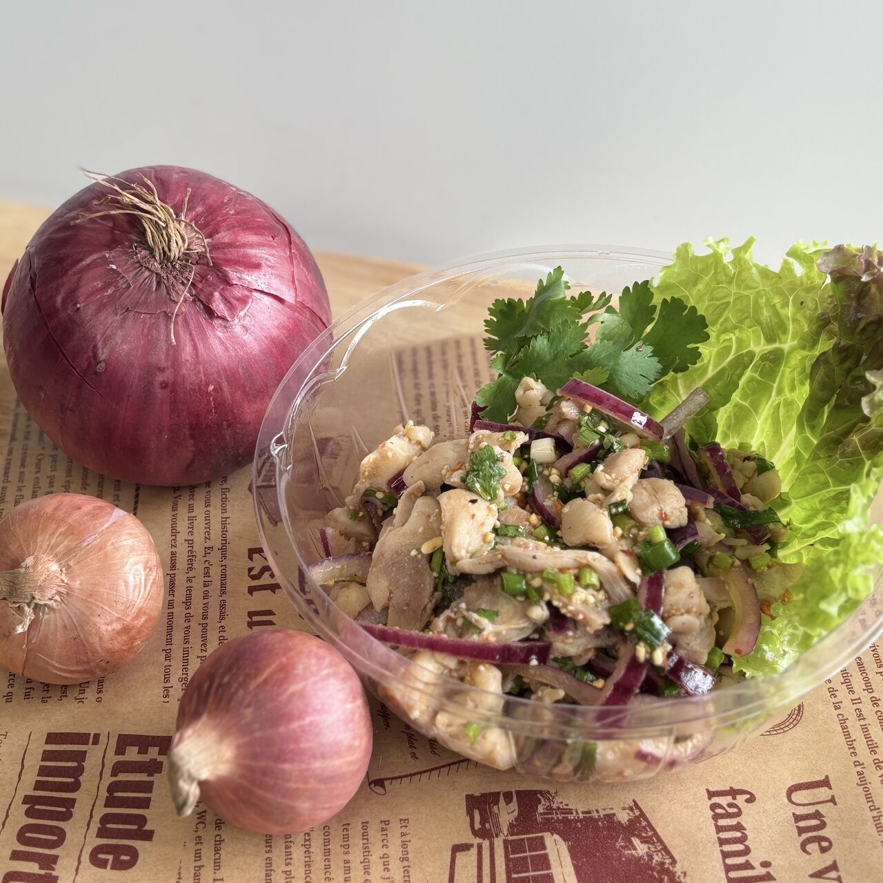 あら挽き鶏肉のハーブサラダ ハーブの風味と唐辛子の辛さ、レモンの酸味が合わさった逸品