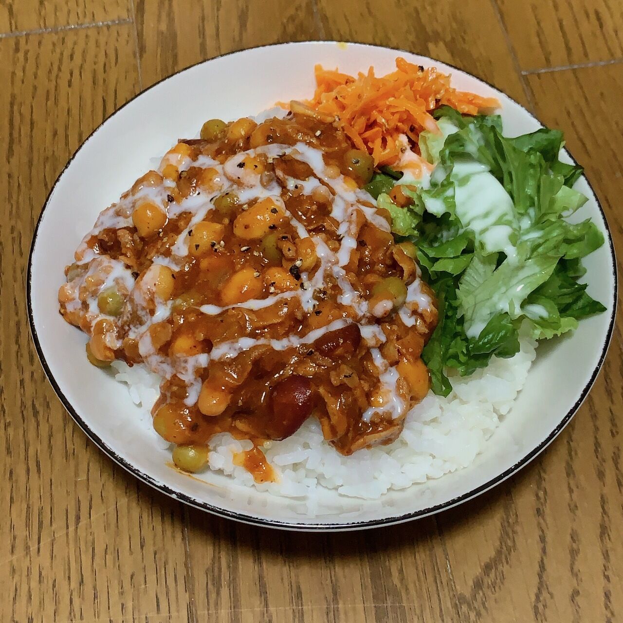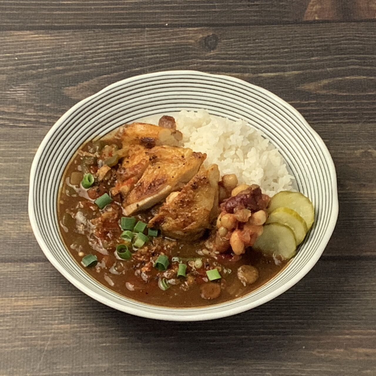 ガンボと同じベース野菜を使用したシンプルなキーマカレー。隠し味にとあるアジアの調味料を使用しコク深い味になっています。