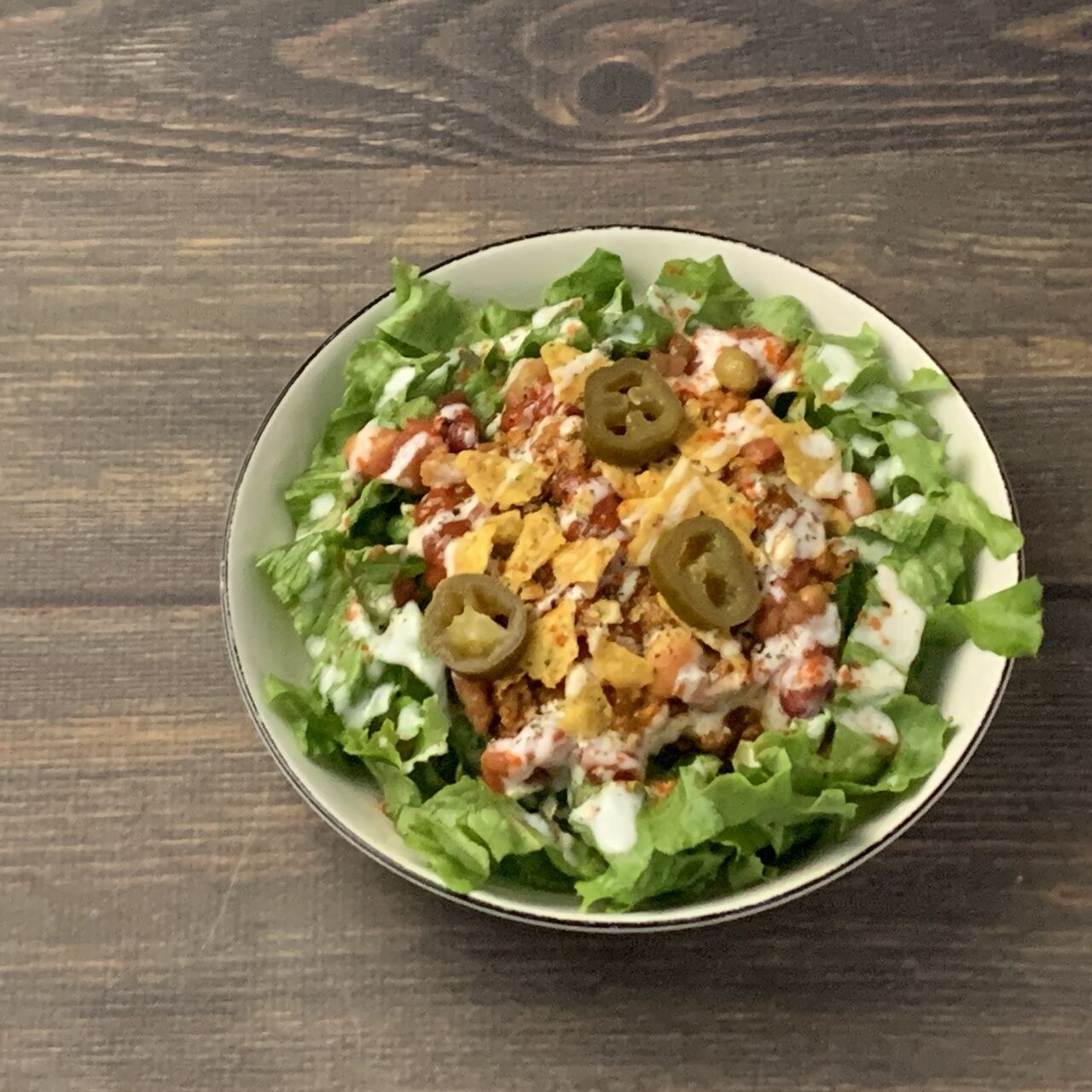 チーズは不使用、多めのレタスとヨーグルトソースでさっぱりとしたタコライスです。