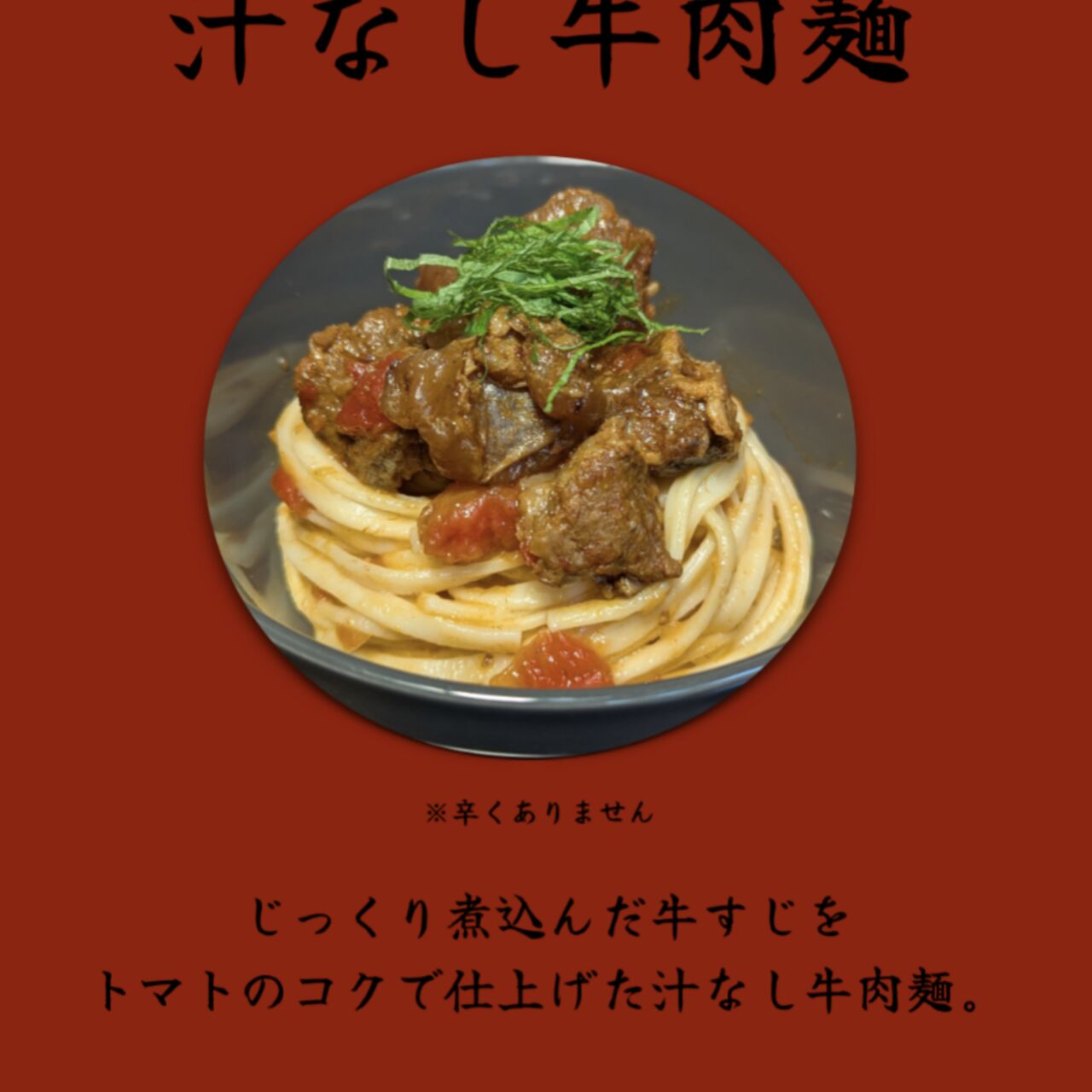 じっくり煮込んだ牛すじをトマトのコクで仕上げた牛肉麺。