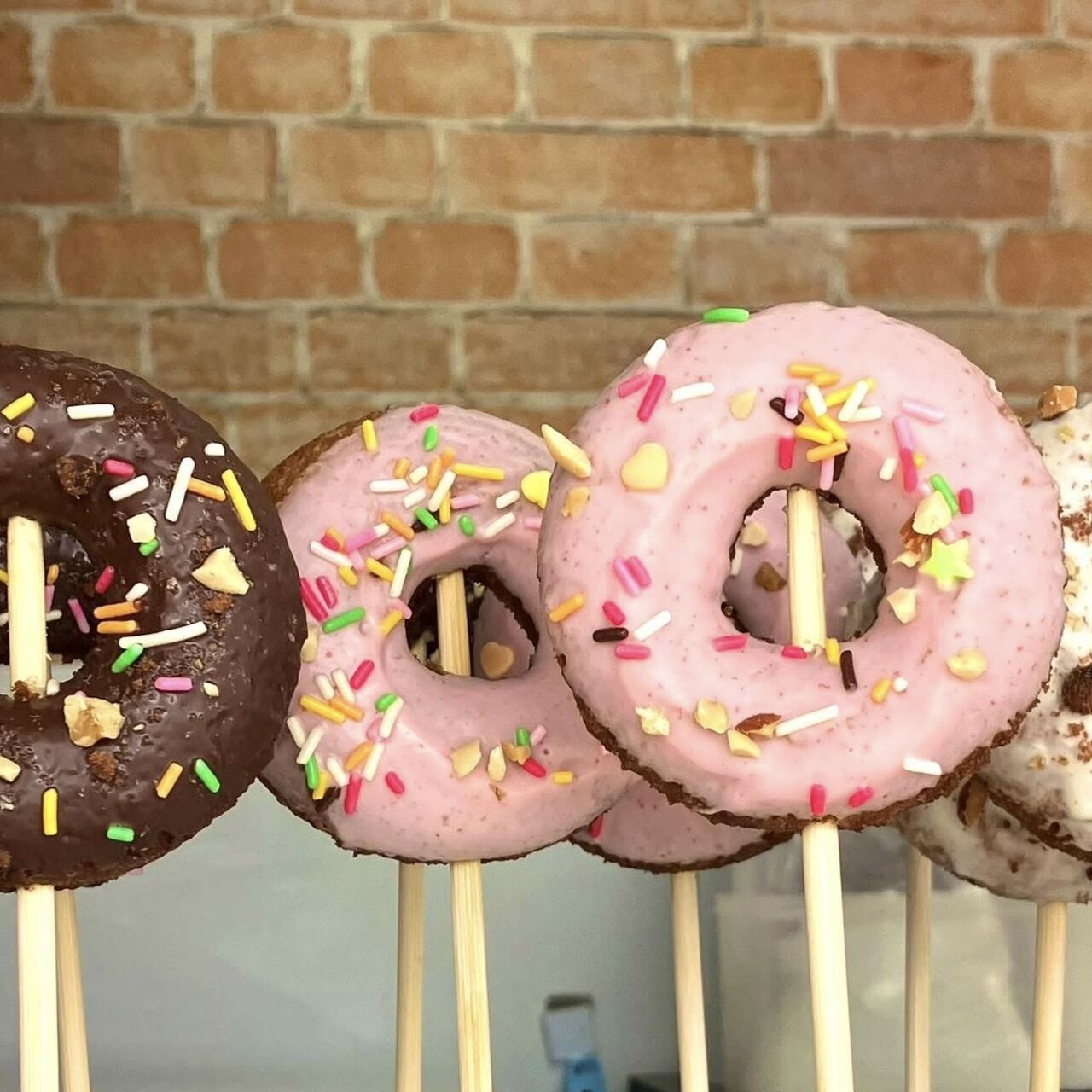 ドーナツにチョコレートをコーティングして可愛くデコレーションしました