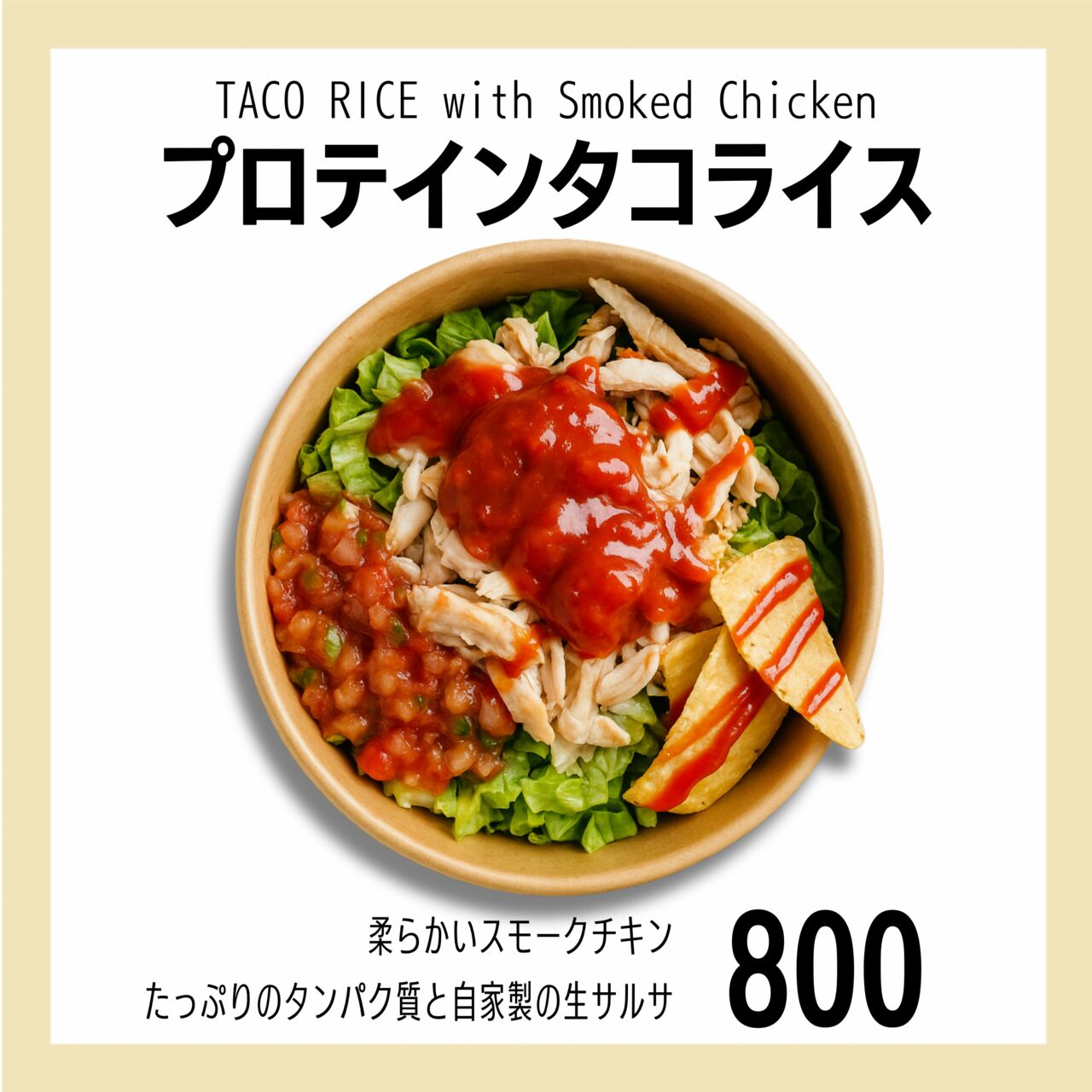 スモークチキン使用。高たんぱくでヘルシー、さらに野菜たっぷりのフレッシュサルサ。しっかりの食べ応え。
