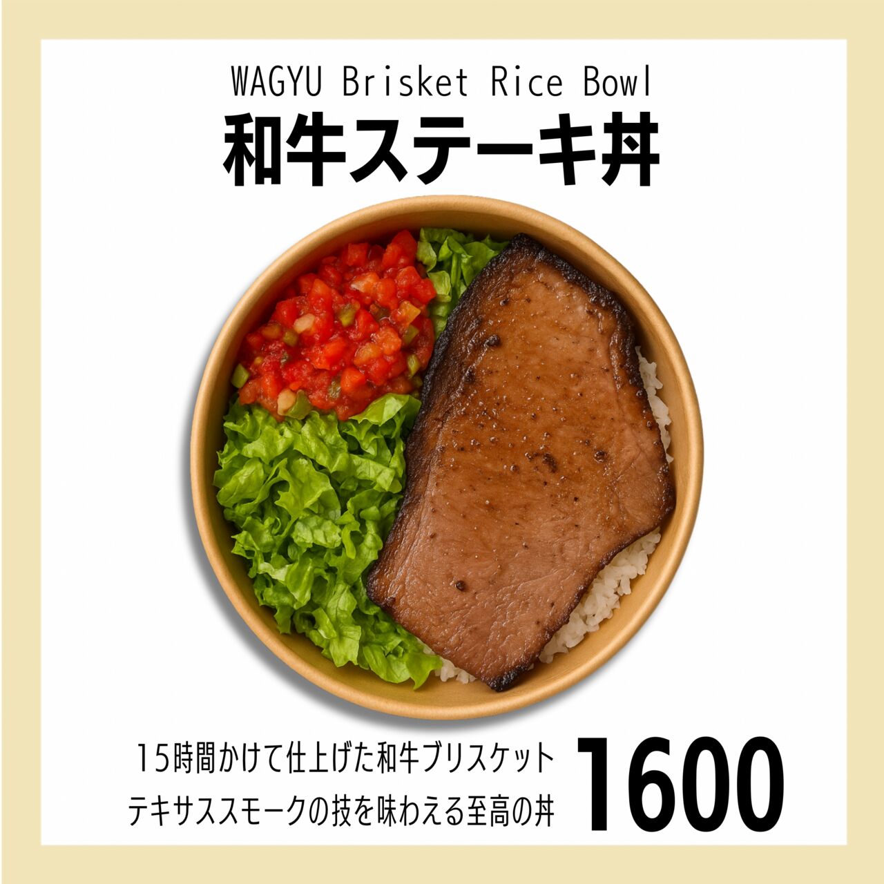 12時間スモークのブリスケットを贅沢に乗せた、どこにもないステーキ丼です。