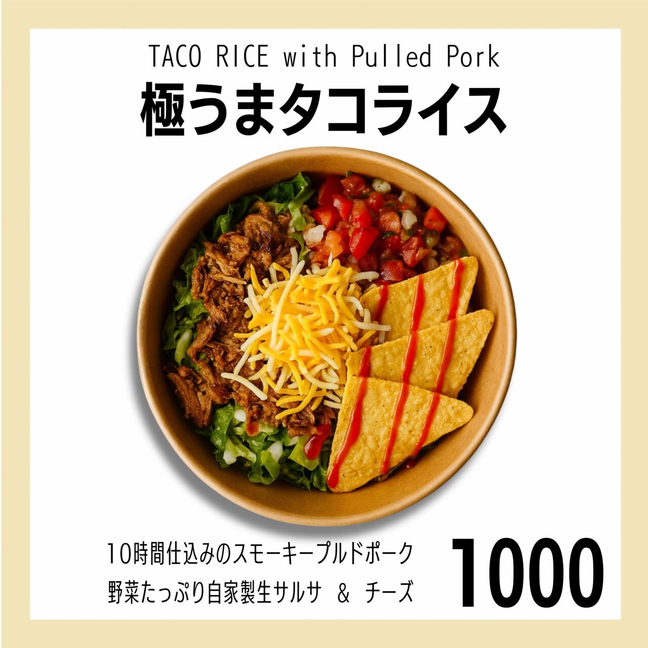 10時間かけて仕込んだ飲めるBBQポークを使用したタコライスです。」