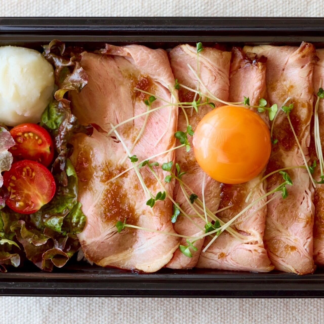 特製のスパイスブレンドでお肉の旨味を引き立て、直火でじっくり焼き上げたローストポークに卵を絡めたおすすめ商品。