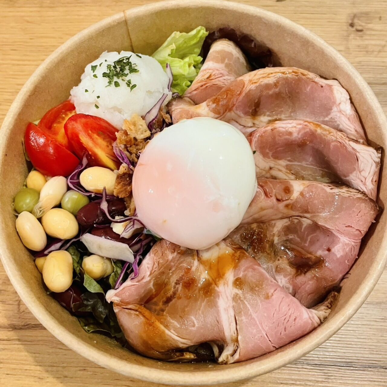 ローストポーク丼卵トッピング