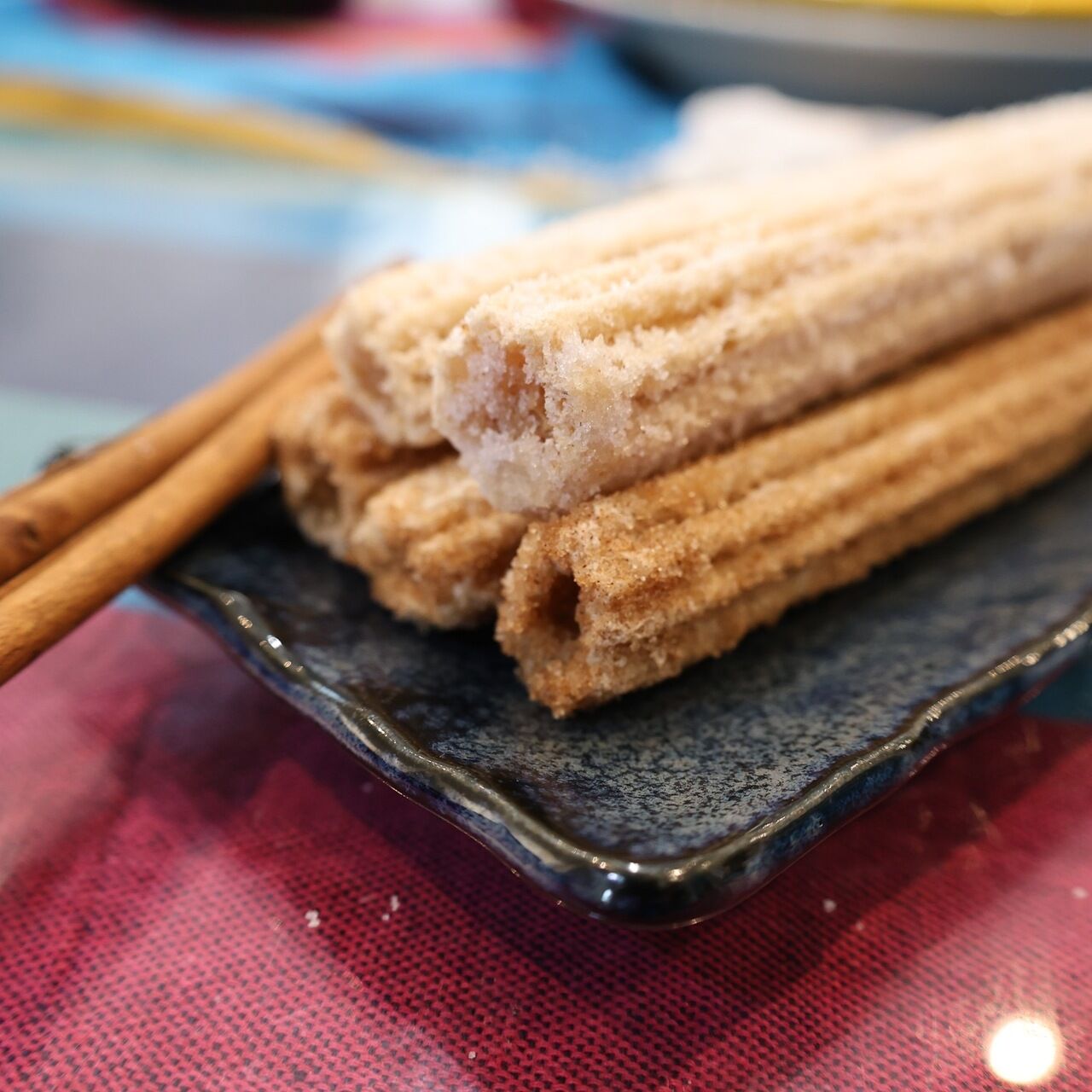 熱々のチュロスです!シナモン、ココア、シュガーの3フレーバーからお楽しみください。